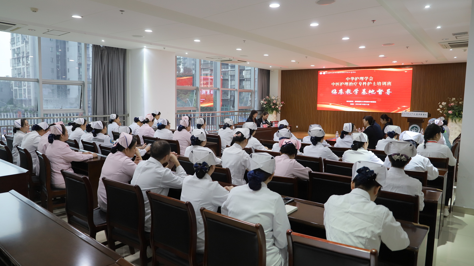 2024年10月31日,中华护理学会中医、中西医结合专委会专家蒋运兰、刘梦婕一行莅临我院,对中华护理学会中医护理治疗专科护士培训基地工作进行督导。医院副院长汪国友、基地相关人员及科室护士长参加了会议。