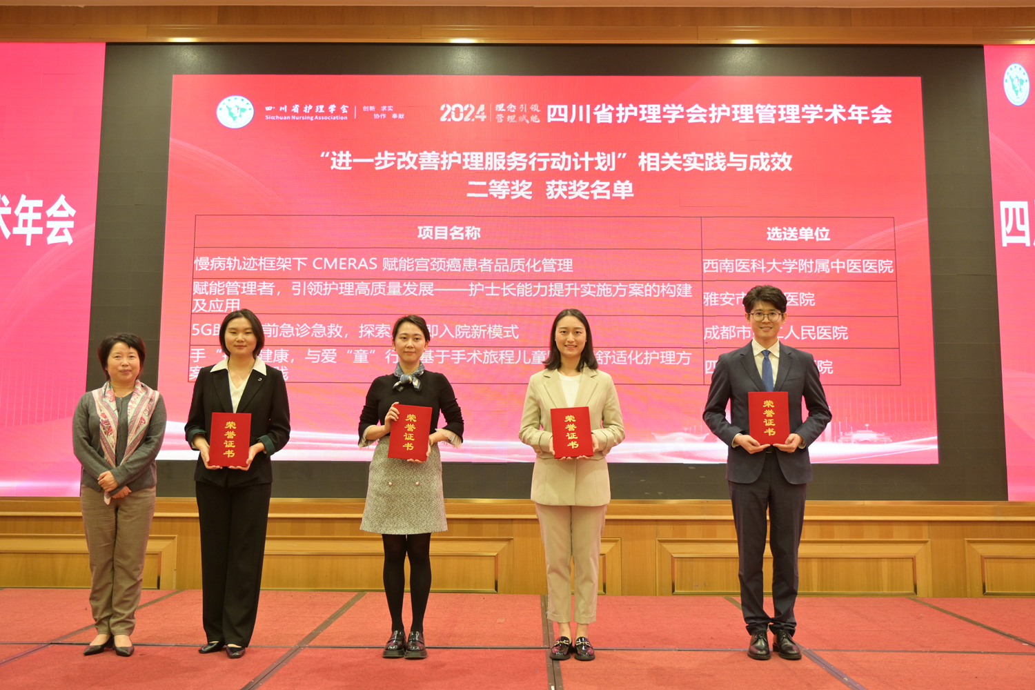 2024年11月6-8日,四川省护理学会2024年护理管理学术年会在成都召开。会上进行了“进一步改善护理服务行动计划”相关实践与成效案例比赛,本次比赛共收到案例投稿56份,入围决赛参与现场汇报的有23份。经过现场激烈角逐,我院妇科副护士长周霜的参赛案例《慢病轨迹框架下CMERAS赋能宫颈癌患者品质化管理》脱颖而出,荣获二等奖。