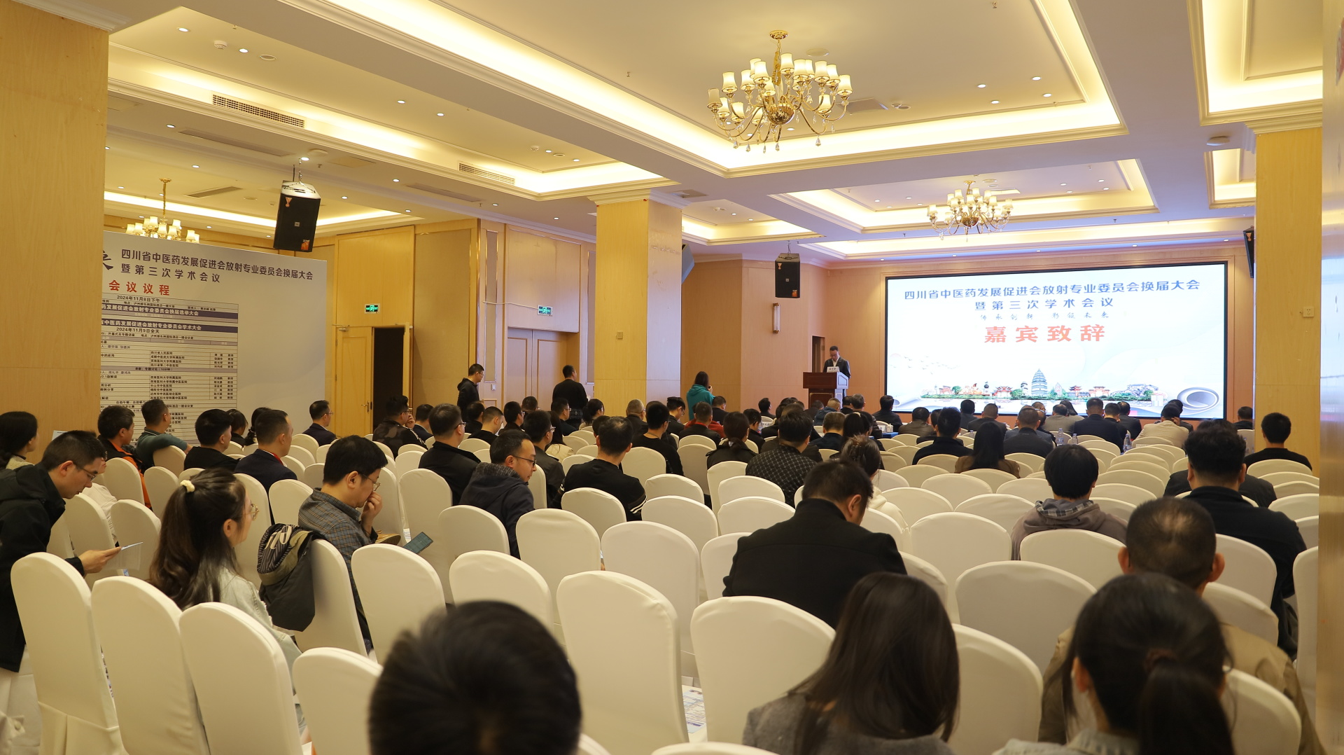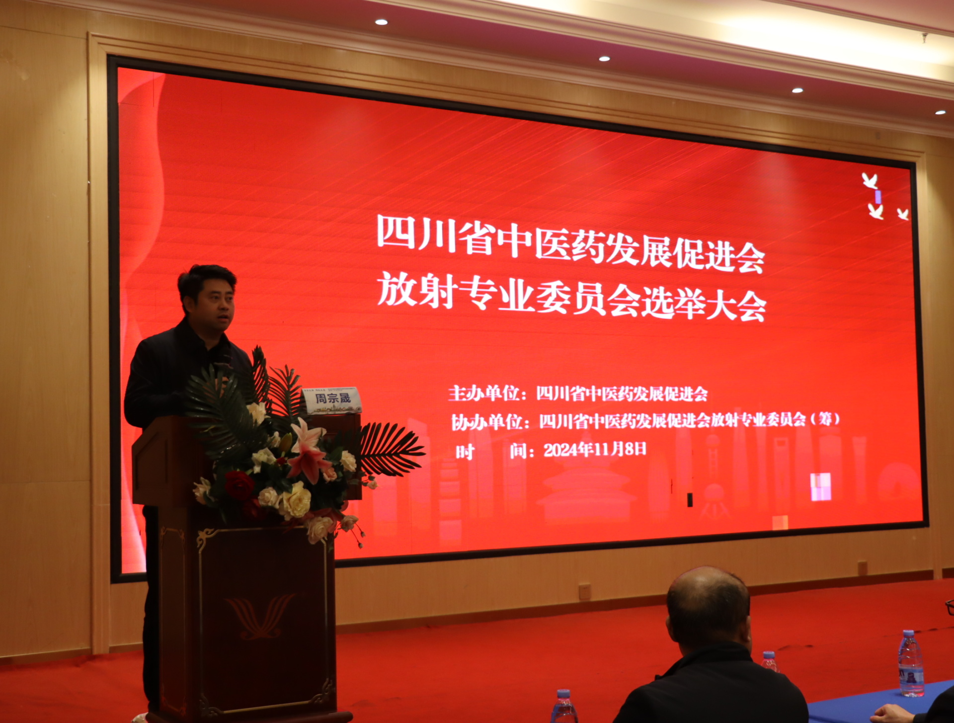 2024年11月8-9日,我院召开四川省中医药发展促进放射专业委员会换届选举大会暨“传承创新,影领未来”学术会议,医院党委副书记雷学举、四川省中医药发展促进会副秘书长周宗晟、四川省中医药发展促进会放射专业委员会全体委员,全省各医疗机构从事影像专业及相关领域医务工作者等参加了开幕式。开幕式由我院放射影像科主任兼放射影像科介入诊疗组主任斯光晏主持。