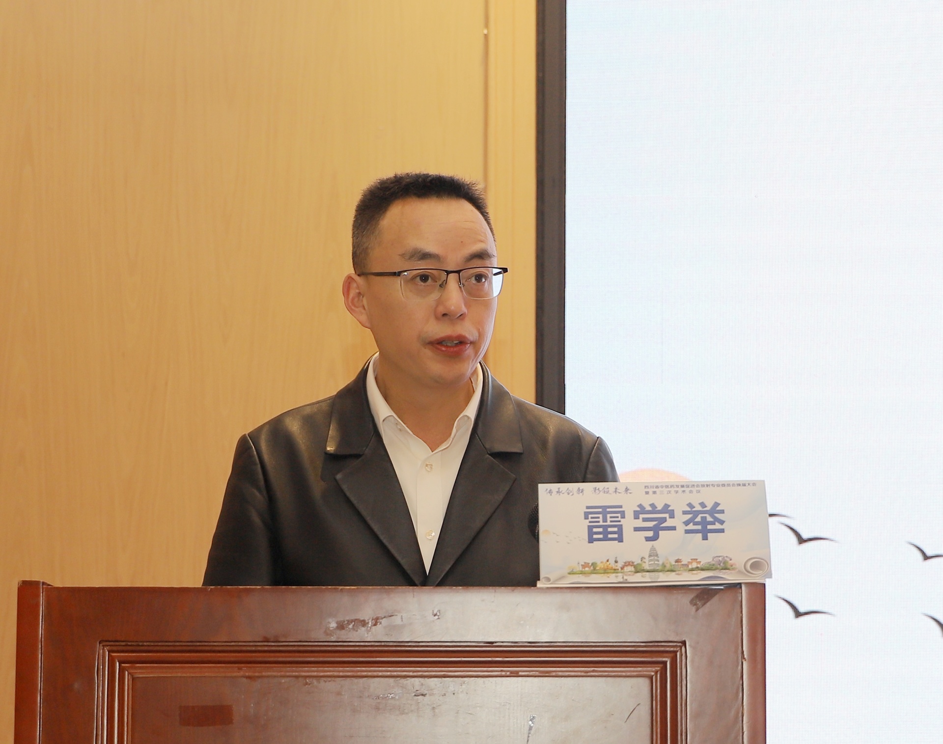 雷学举致辞。他介绍了我院基本情况及放射影像科概况,对新当选的各位专家及全体委员表示祝贺。他指出,我院长期以来高度重视影像学科的发展,作为本届四川省中医药发展促进会放射影像专委会主任委员单位,今后将围绕学会宗旨,积极为大家搭建合作交流的平台。同时他希望各位同仁通过此次会议,交流思想、分享经验,共同推动四川省放射影像专业高质量发展。