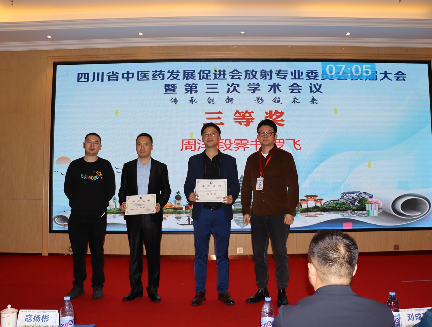 会前,四川省中医药发展促进会放射专业委员会换届大会召开,我院斯光晏当选为主任委员,杨彬、赵捷当选为常委委员。