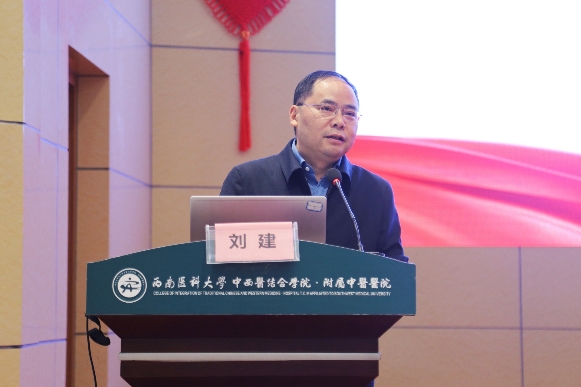 刘建发言,他感谢学校一直以来对中西医结合学院·附属中医医院发展给予的关心与支持,并向新任的代天祥同志表示热烈祝贺。他表示坚决拥护和服从学校的决定,将一如既往严格执行党委领导下的院长负责制,在医院党委的领导下,与班子成员和全体干部职工奋力推进医院高质量发展新征程,为实现学校的“138”发展战略做出更大的贡献。