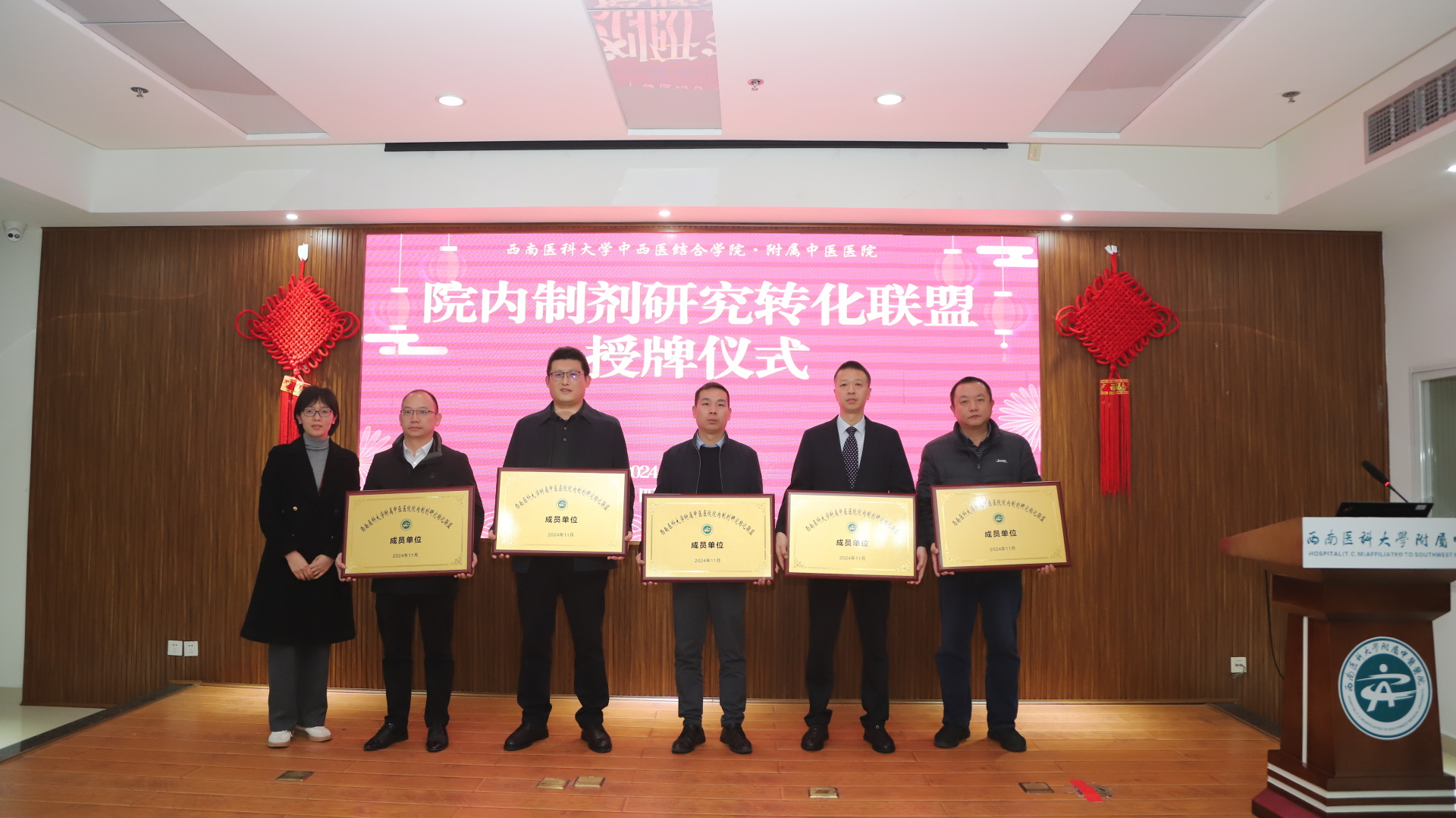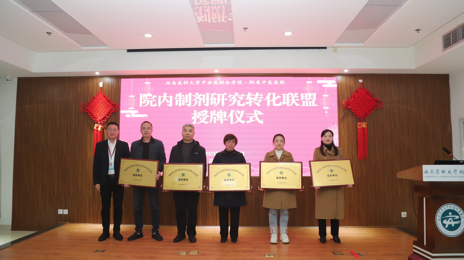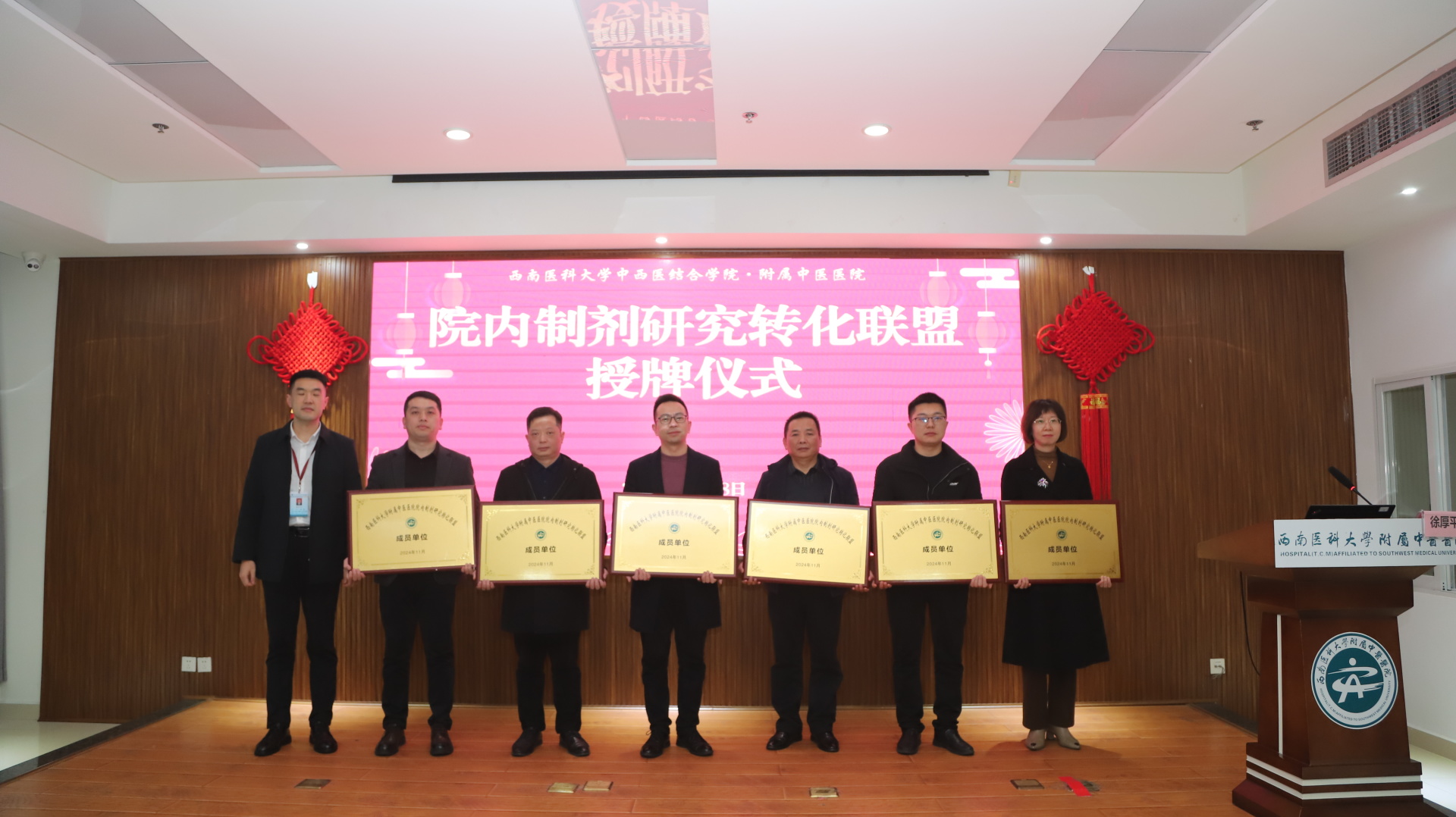 在院内制剂研究转化联盟成立大会上,我院制剂室主任蒲清荣对中医药院内制剂调剂研发工作、医院的区域中医药院内制剂研究转化中心建设情况作了介绍。医院与各合作单位签订了院内制剂研发协议并授予了院内制剂研究转化联盟牌匾。