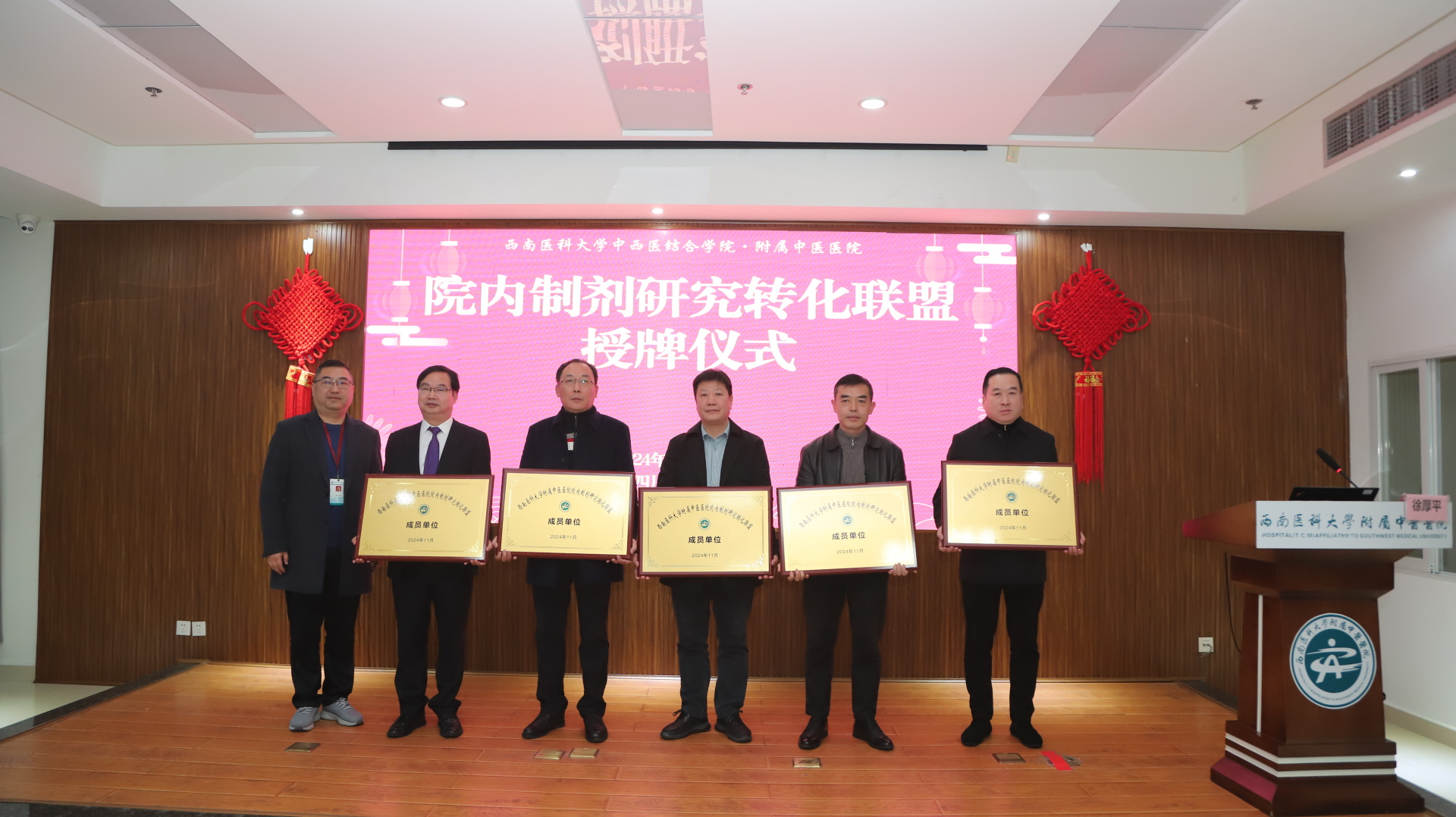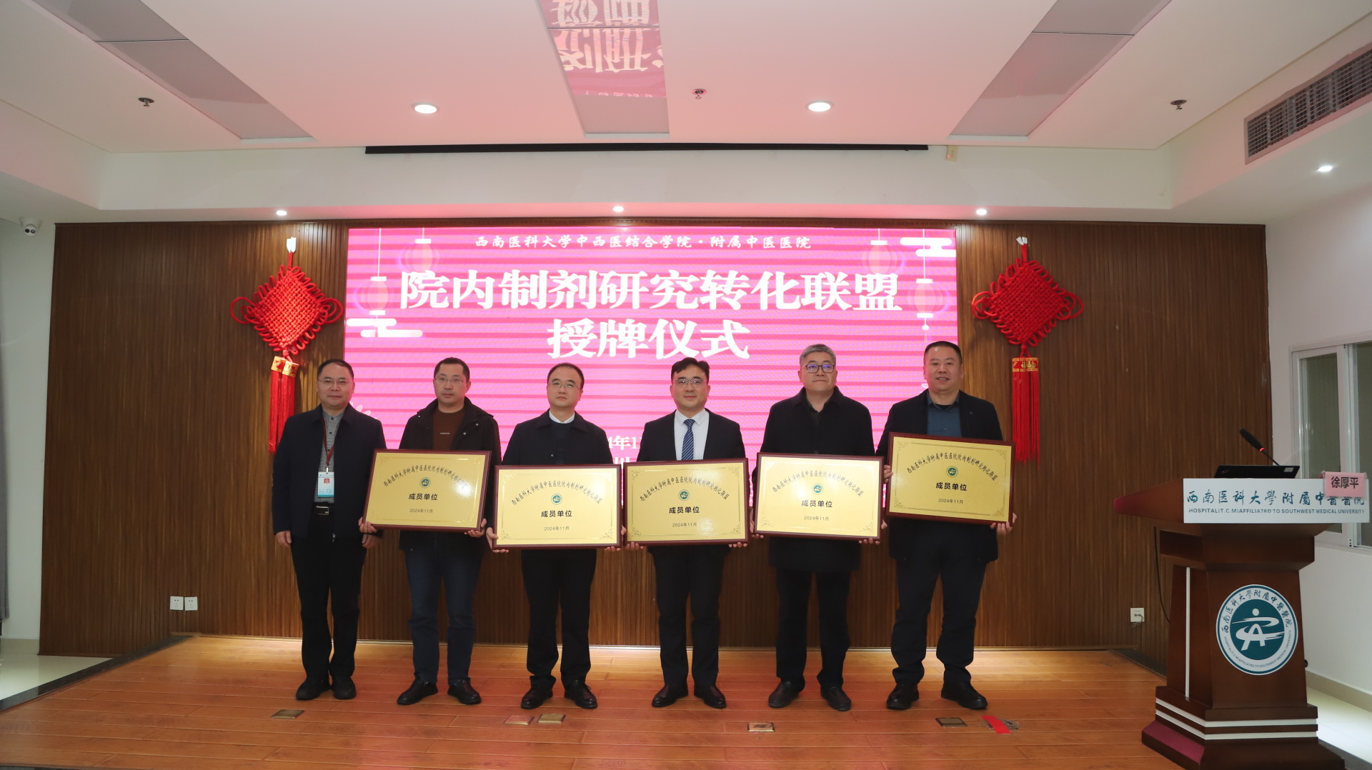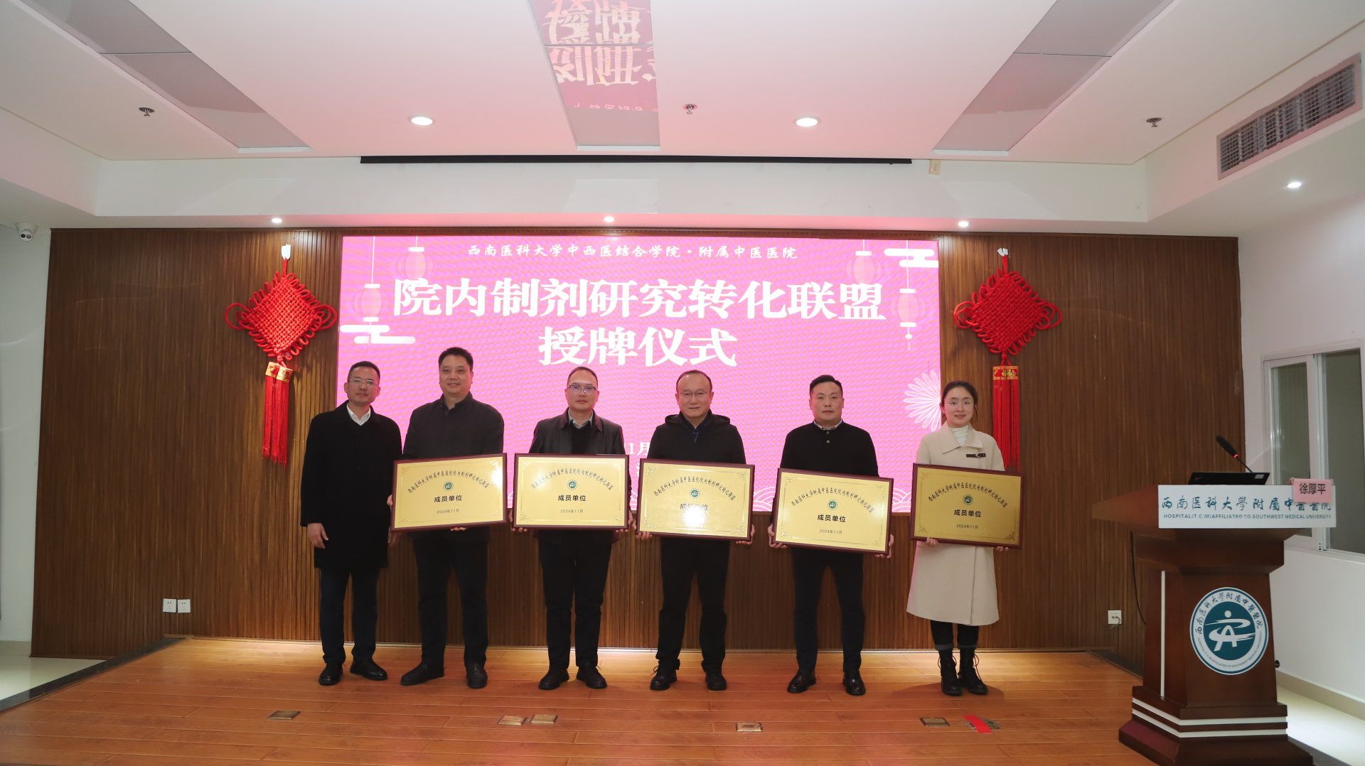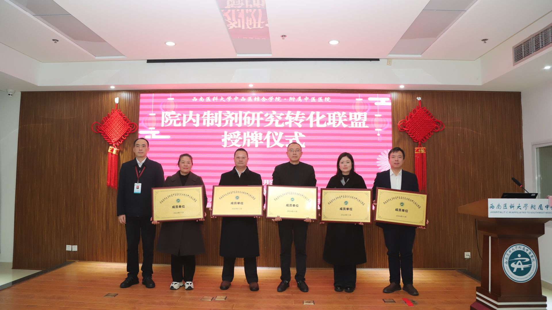 在院内制剂研究转化联盟成立大会上,我院制剂室主任蒲清荣对中医药院内制剂调剂研发工作、医院的区域中医药院内制剂研究转化中心建设情况作了介绍。医院与各合作单位签订了院内制剂研发协议并授予了院内制剂研究转化联盟牌匾。