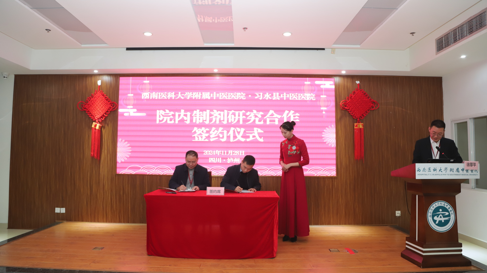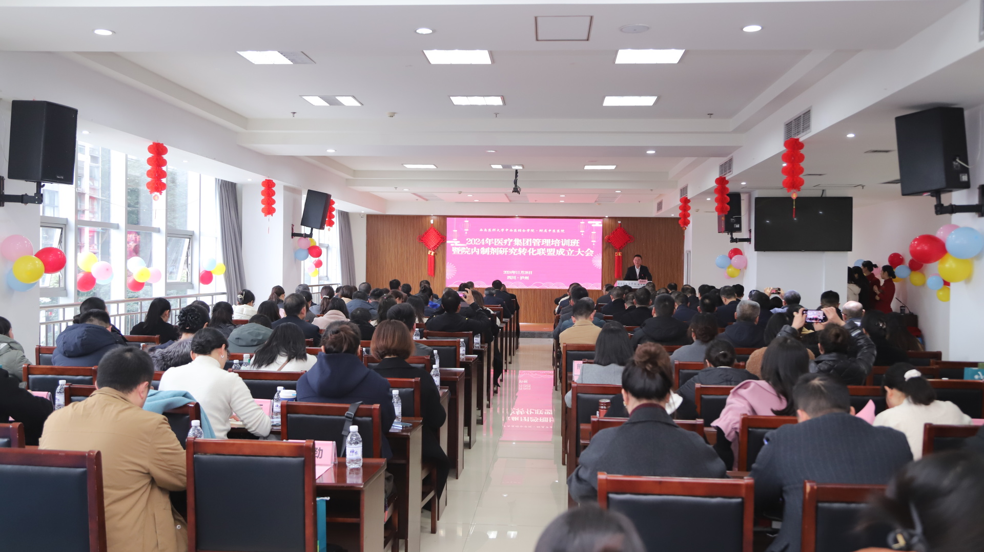 2024年11月28日,我院举行了2024年医疗集团管理培训班暨院内制剂研究转化联盟成立大会。我院党委书记代天祥、院长刘建等党政领导,泸州及周边地区30余家兄弟单位、120余名参会代表等参加了会议。会议由我院副院长徐厚平主持。