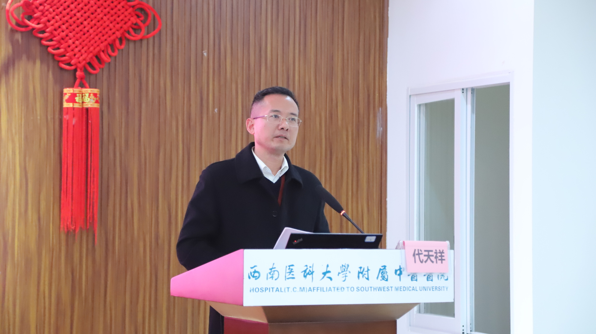 代天祥讲话。他对各兄弟单位代表的到来表示欢迎,向一直以来关心、支持医院事业发展的各位同仁表示衷心的感谢。他表示,医院将继续坚持“资源共享、优势互补、合作共赢、共谋发展”的原则,做到团结更加紧密、合作更加深入、重点更加突出、优势更加互补、成效更加显著,根据医疗集团成员单位的合作需求在医院管理、医疗技术、科研教学等方面深入交流、深化合作,进一步提升县级中医医院的医疗服务能力和水平,助推县级中医医院高质量发展,为川渝滇黔地区人民群众提供更加优质的中医药健康服务,携手助力中医药事业高质量发展。
