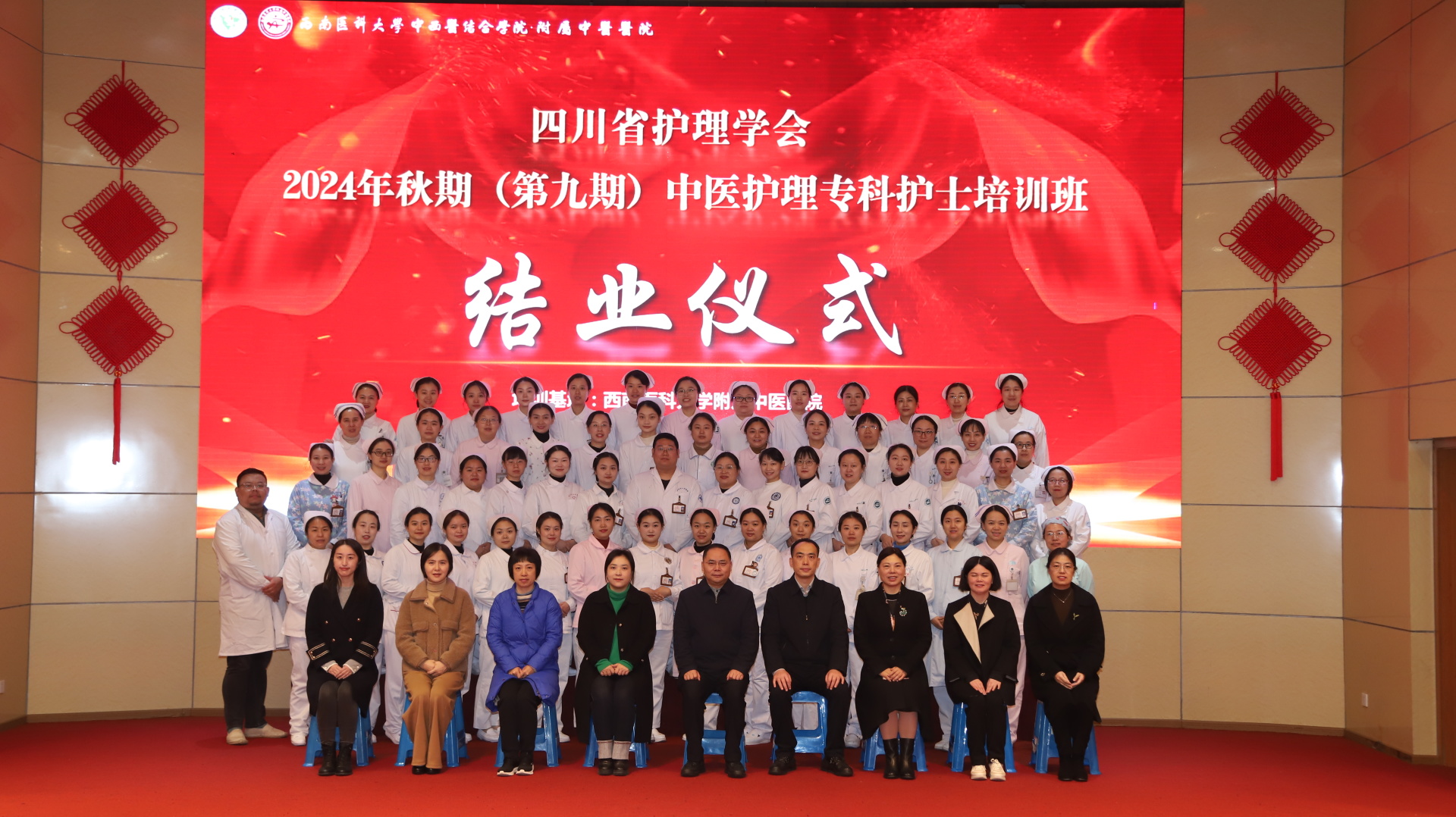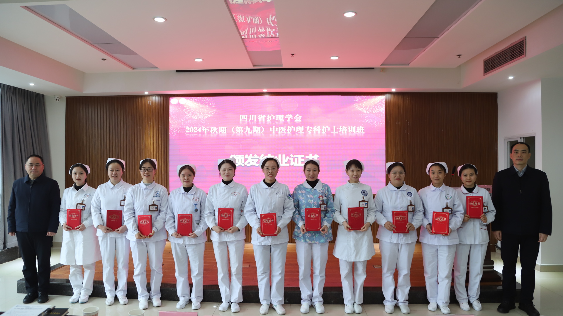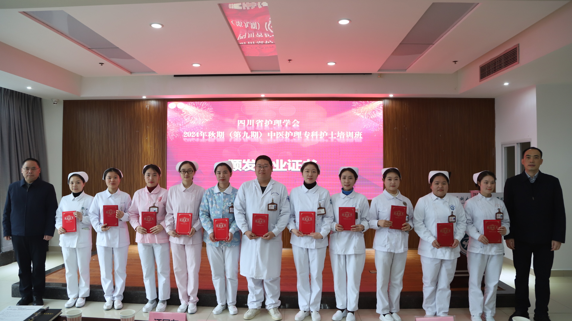 2024年11月29日,我院举行四川省护理学会2024年秋期(第九届)中医护理专科护士培训班结业仪式,医院院长刘建、副院长汪国友,相关职能部门负责人、基地科室护士长及33名中医护理专科护士学员等参加了结业典礼,仪式由汪国友主持。