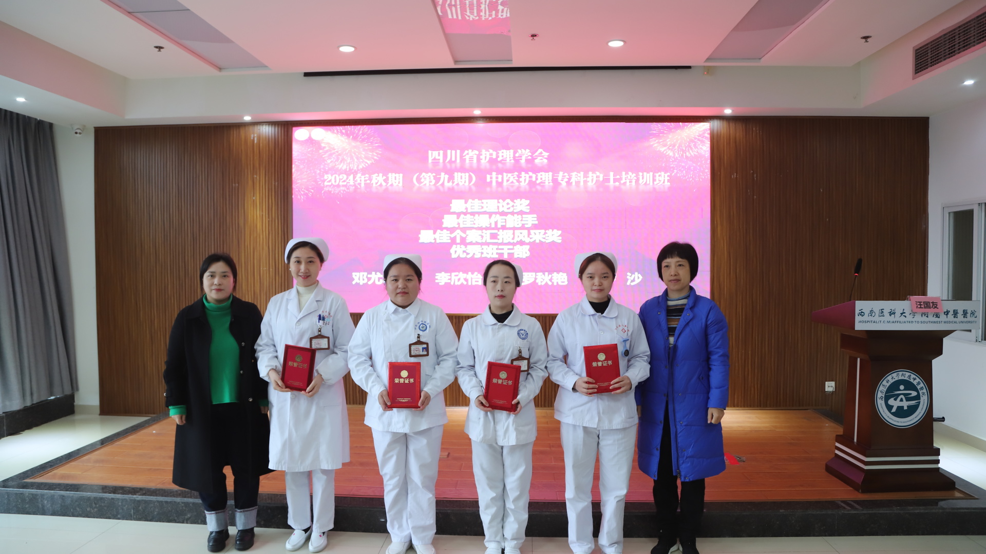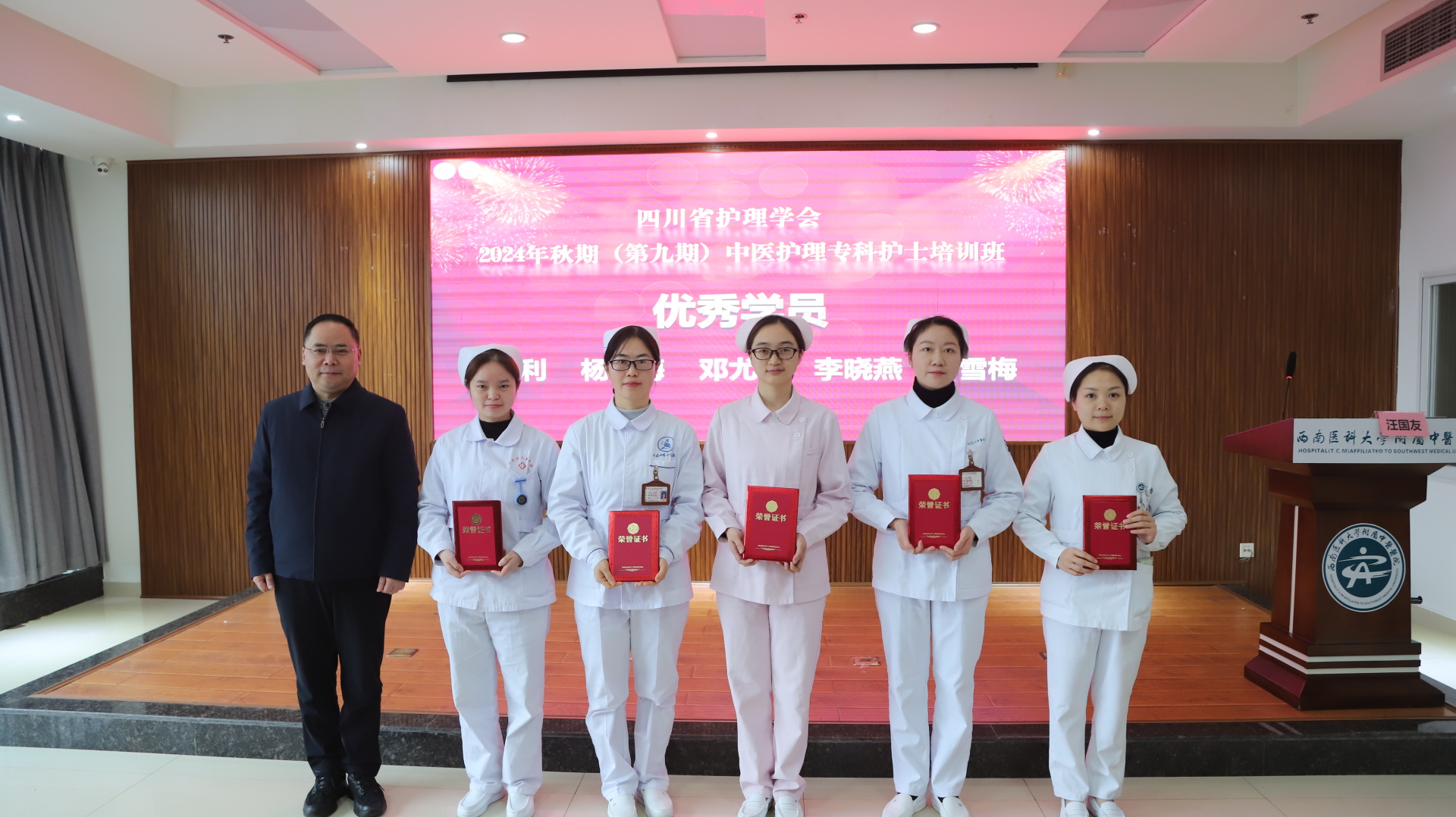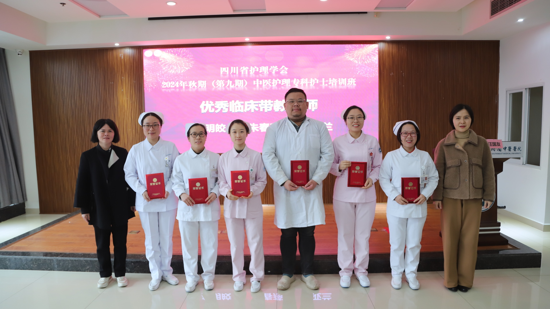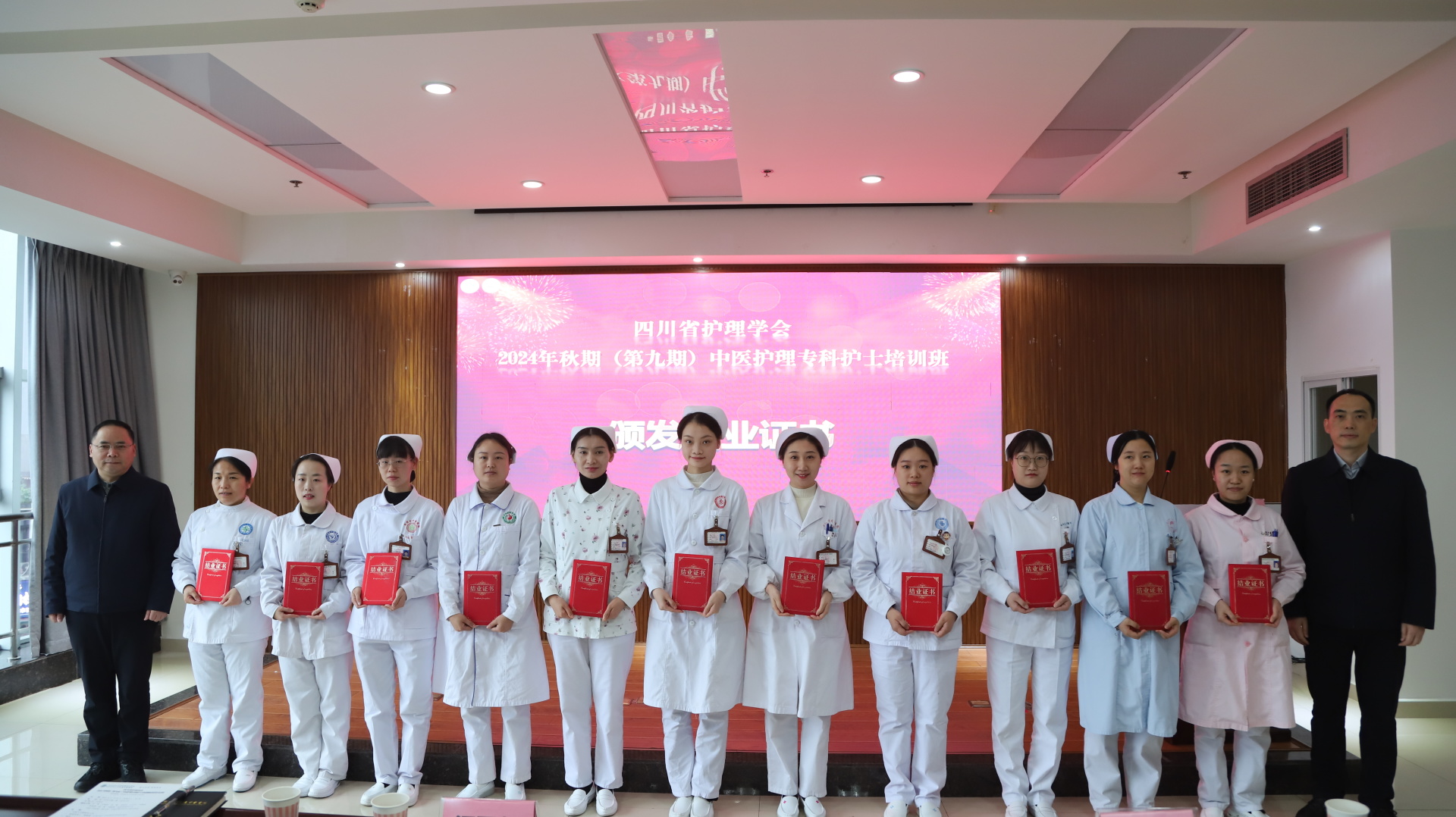 2024年11月29日,我院举行四川省护理学会2024年秋期(第九届)中医护理专科护士培训班结业仪式,医院院长刘建、副院长汪国友,相关职能部门负责人、基地科室护士长及33名中医护理专科护士学员等参加了结业典礼,仪式由汪国友主持。