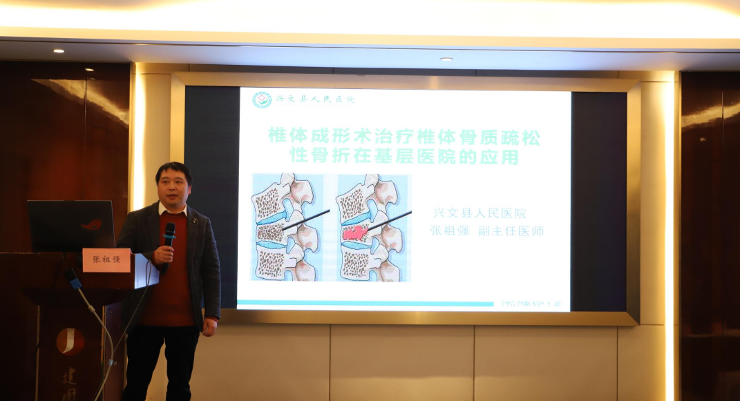 兴文县人民医院张祖强副主任医师作了《椎体成形术治疗椎体骨质疏松性骨折在基层医院的应用》专题讲座