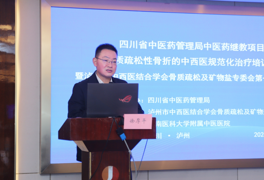 2024年11月30日,我院举办四川省中医药继续教育项目“骨质疏松性骨折的中西医规范化治疗培训班”暨泸州市中西医结合学会骨质疏松及矿物盐专委会第七届学术年会,医院副院长徐厚平,相关授课专家及省内各医疗机构相关专业同仁等100余人参加了开幕式。开幕式由我院骨伤科创伤·正骨组主任刘宗超主持。
