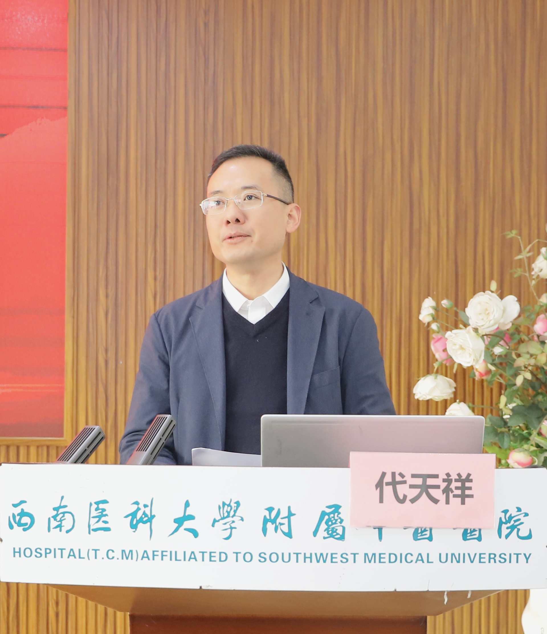 开幕式上,代天祥致辞。他对各位专家、同仁的到来表示欢迎,并介绍了医院基本情况及脑病科概况。他指出,本次会议本着“开放交流、资源共享”的原则,有幸邀请到了省内外多家兄弟单位的专家前来授课,传经送宝,希望与会人员以此次学术活动为契机,共同交流学术成果,精进业务能力,进一步推广脑病中医药诊治新理论、新技术,进一步促进川南玄府学术思想传承及临床经验的传承发展,共同提高脑病诊疗技术能力水平,更好地为广大群众身体健康服务。