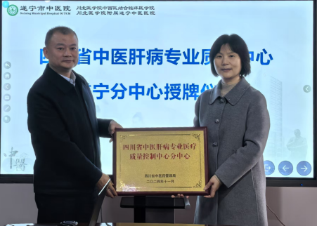 2024年11月29日,四川省中医肝病专业医疗质控中心业务主任、我院大内科副主任兼肝胆病科主任汪静教授带队赴遂宁市中医医院开展中医肝病质控督导检查。检查期间,汪静为遂宁市中医医院授予“四川省中医肝病专业医疗质量控制中心遂宁分中心”牌匾。