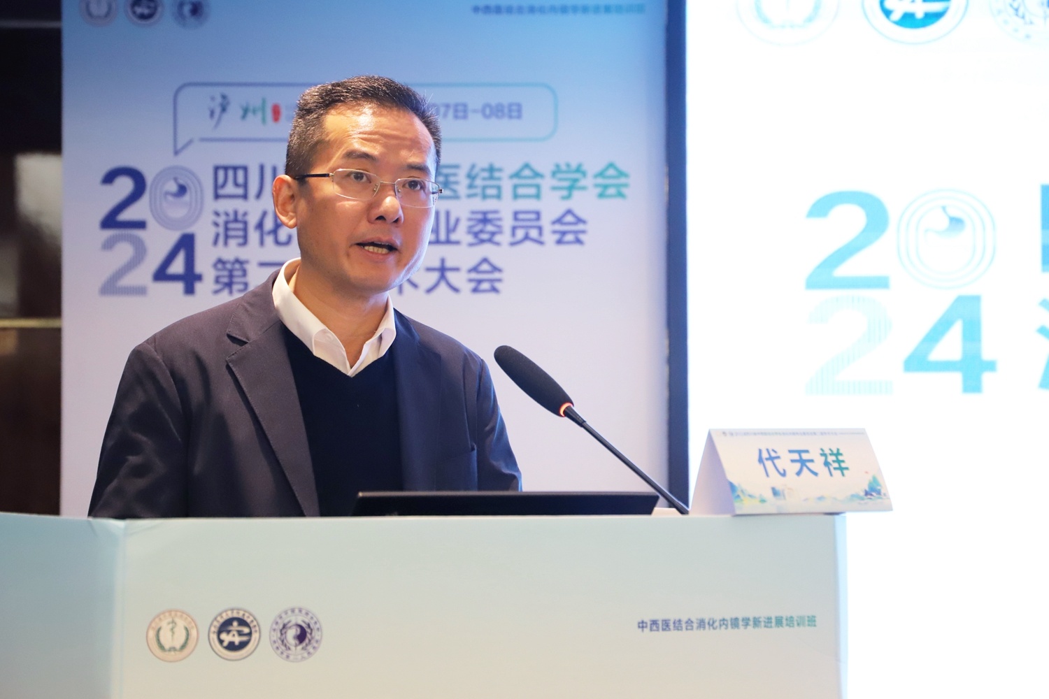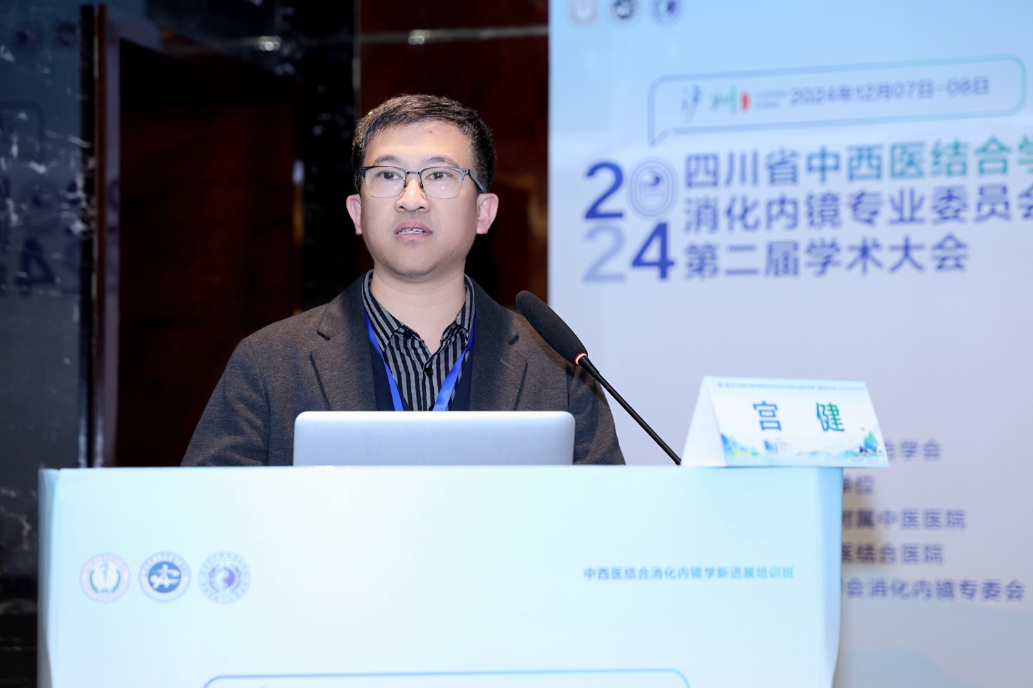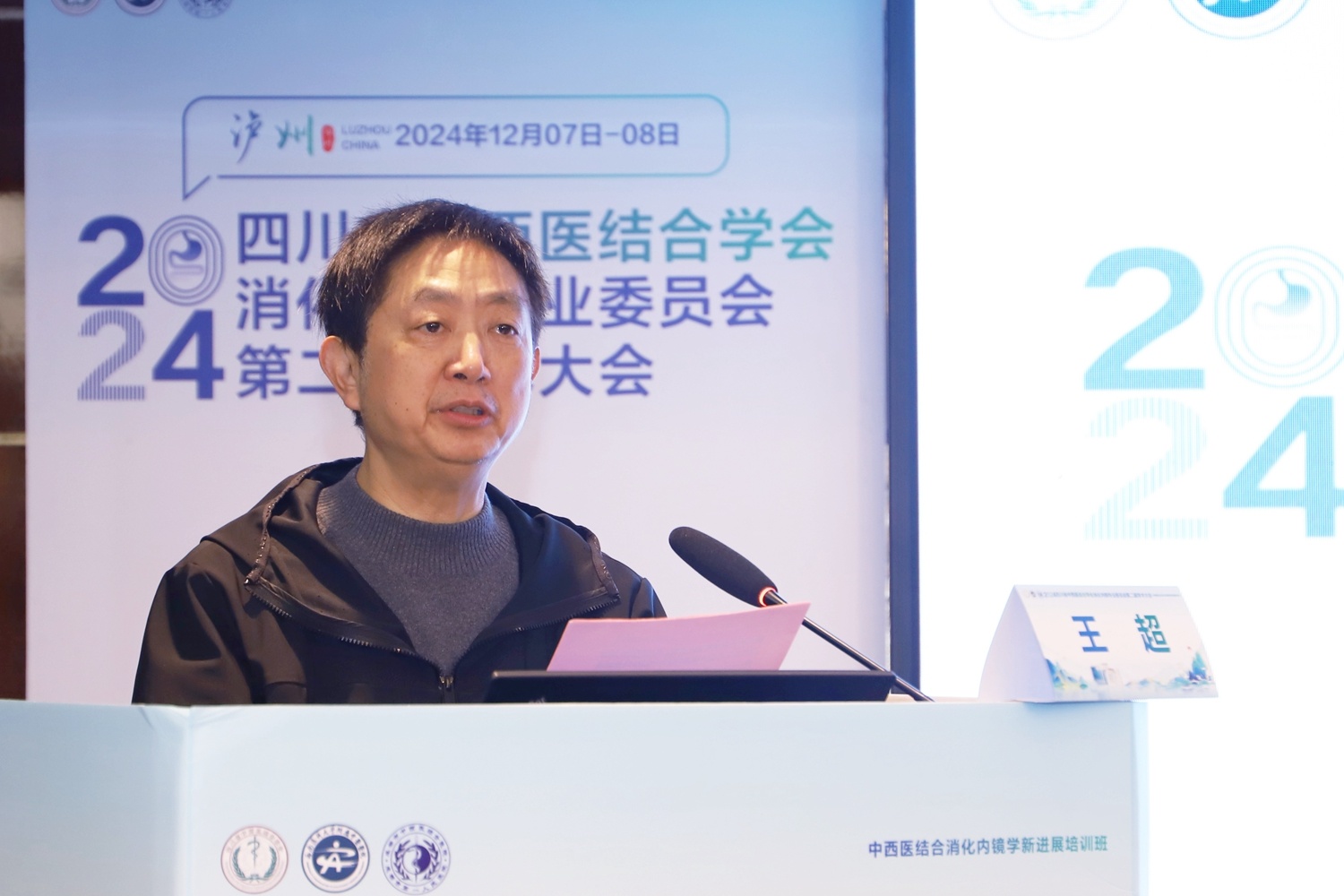 王超讲话。他希望消化内镜专委会充分发挥中西医结合在消化内镜领域的优势和特色,搭建好与基层医疗机构交流及中青年医生培养平台,加强与兄弟专委会的合作互动,带领四川中西医中医药迈向更高的台阶,为中西医结合事业发展贡献更大的智慧和力量。