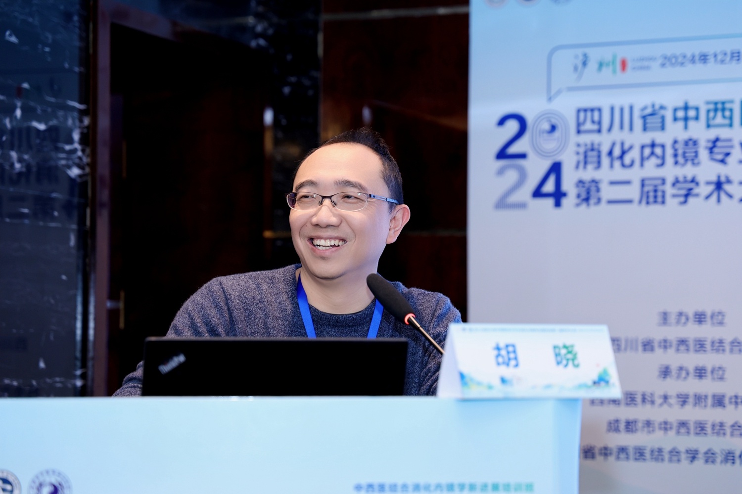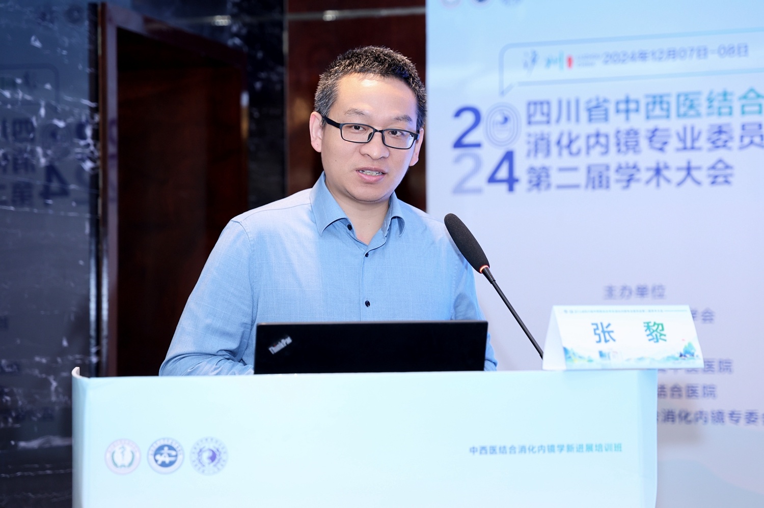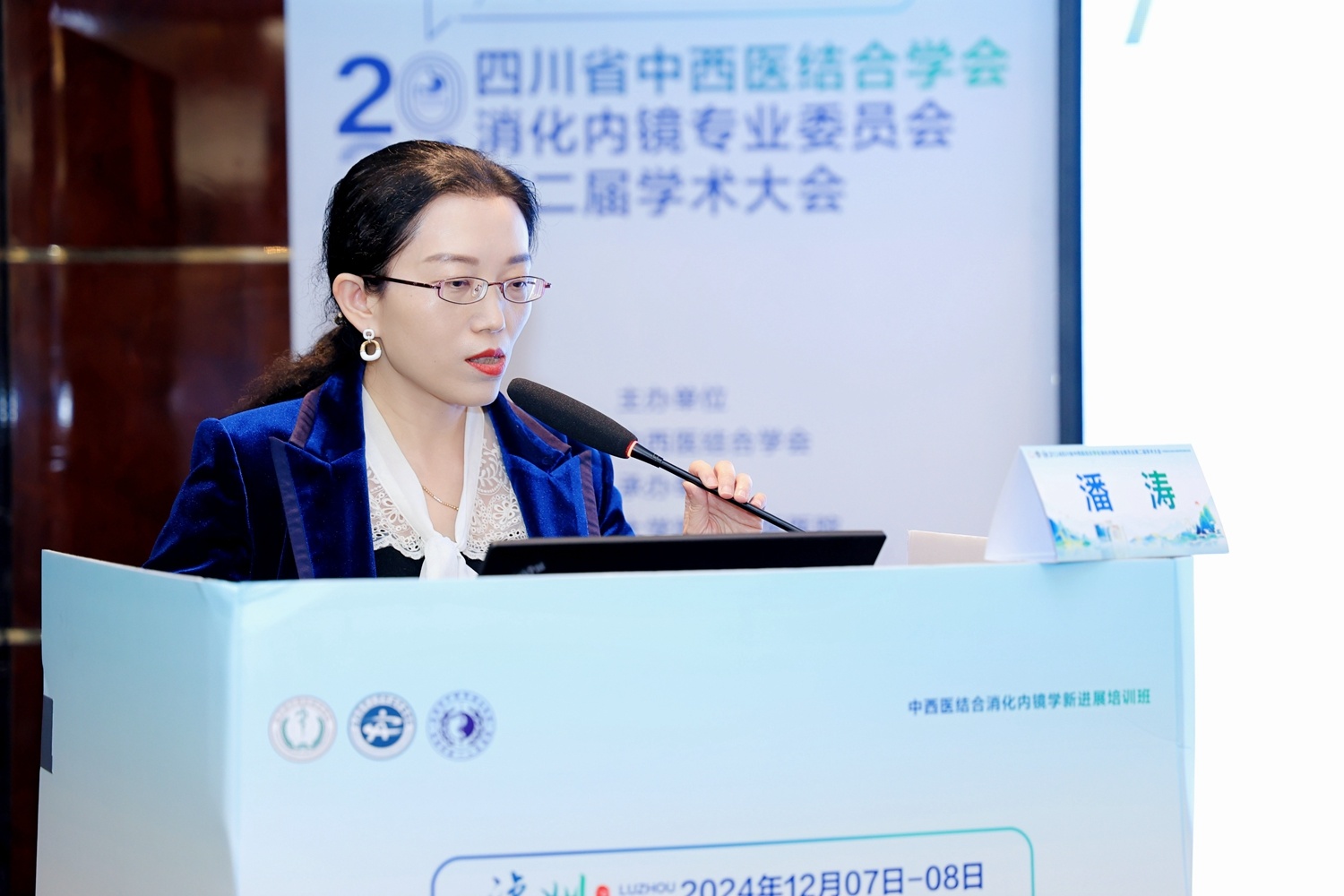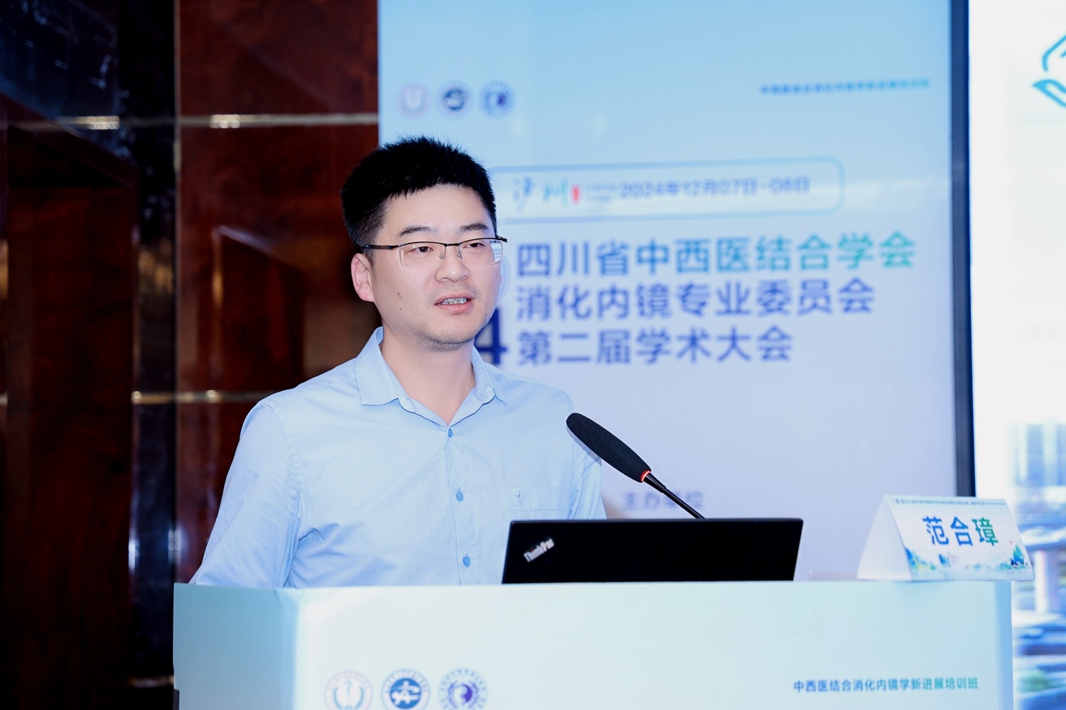 王超讲话。他希望消化内镜专委会充分发挥中西医结合在消化内镜领域的优势和特色,搭建好与基层医疗机构交流及中青年医生培养平台,加强与兄弟专委会的合作互动,带领四川中西医中医药迈向更高的台阶,为中西医结合事业发展贡献更大的智慧和力量。