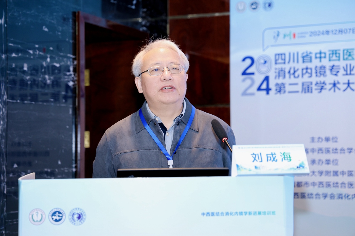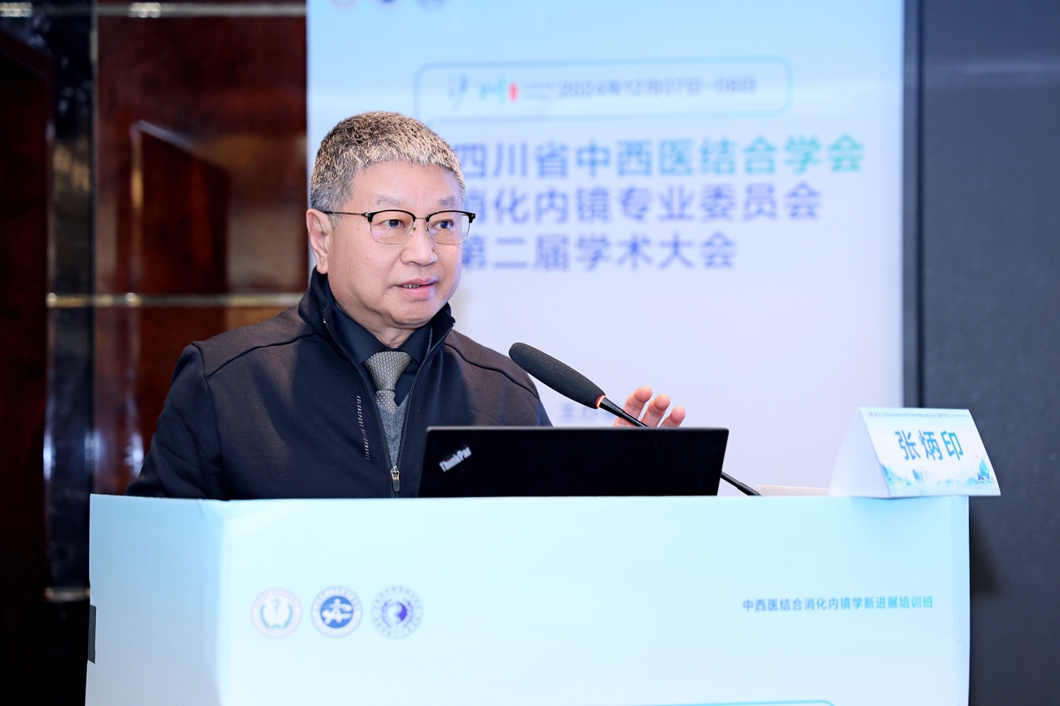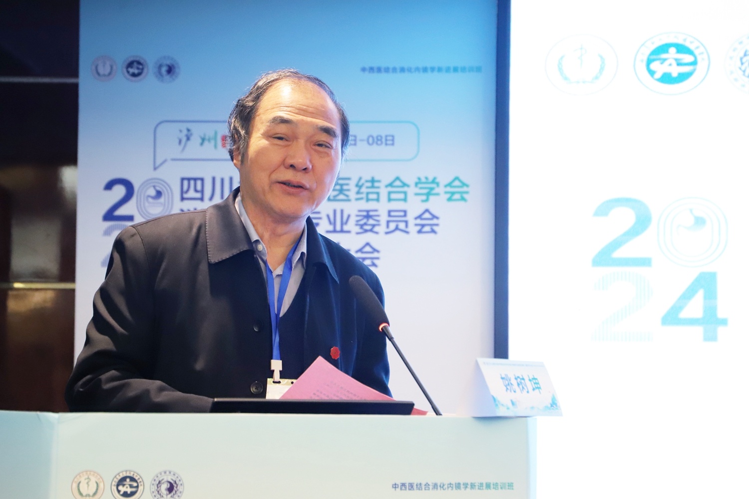 姚树坤讲话。他表示,近年来中西医结合内镜学术取得了长足的进步和发展,为消化道疾病的诊疗提供了有力支撑,也为患者带来了新的福音。希望各位专家同仁继续努力,共同提升四川省中西医结合消化内镜诊治工作水平。