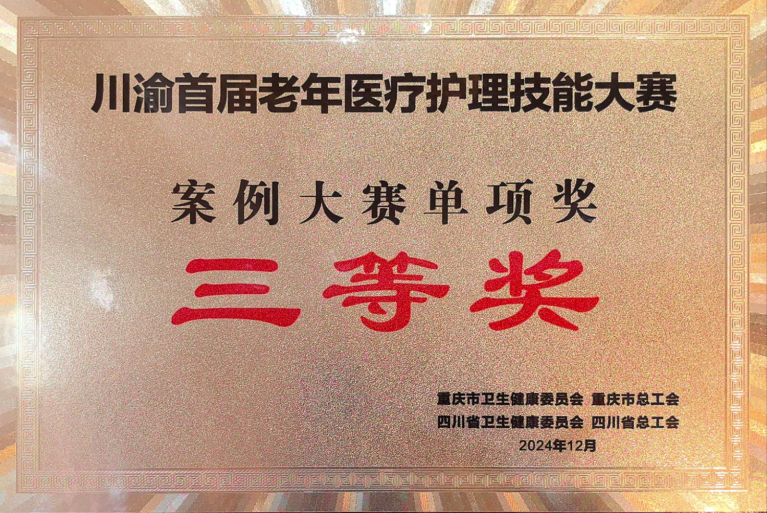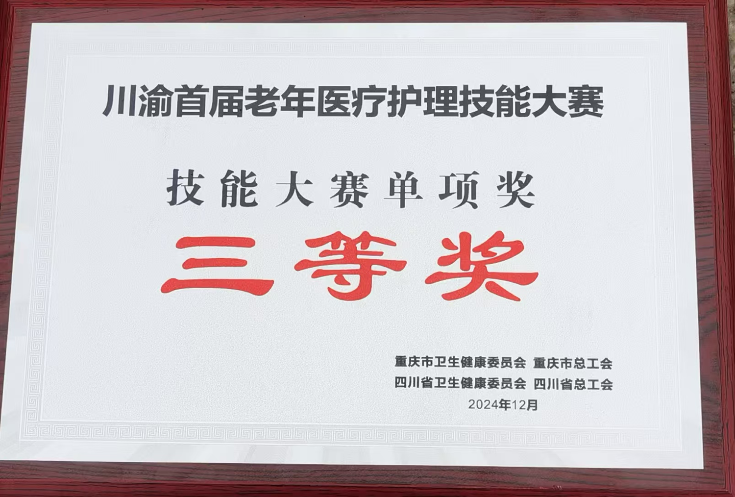 据悉,此次大赛由重庆市卫生健康委员会、四川省卫生健康委员会、重庆市总工会、四川省总工会联合主办,赛程中展现了老年医学关键核心技术、多病共管服务理念、多学科协作诊疗模式,同时考查了医护人员的团队协作、应急处置、疾病诊疗、人文关怀等综合能力。我院将以此次竞赛为契机,以赛促学、以赛促练、以赛促进,不断提升我院老年医疗服务水平,助力老年医学学科发展,为广大患者提供更加高效、安全、优质的医疗服务。