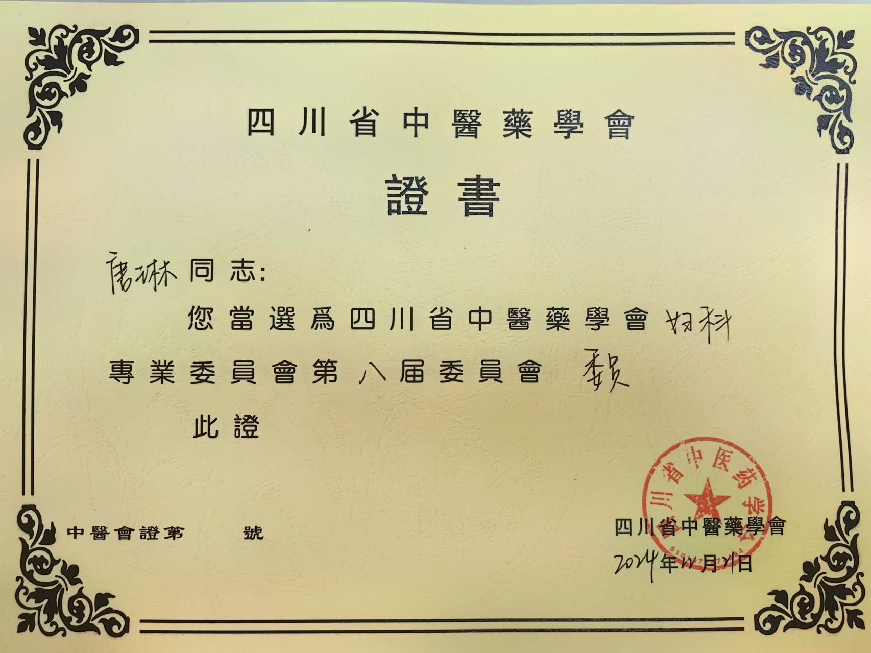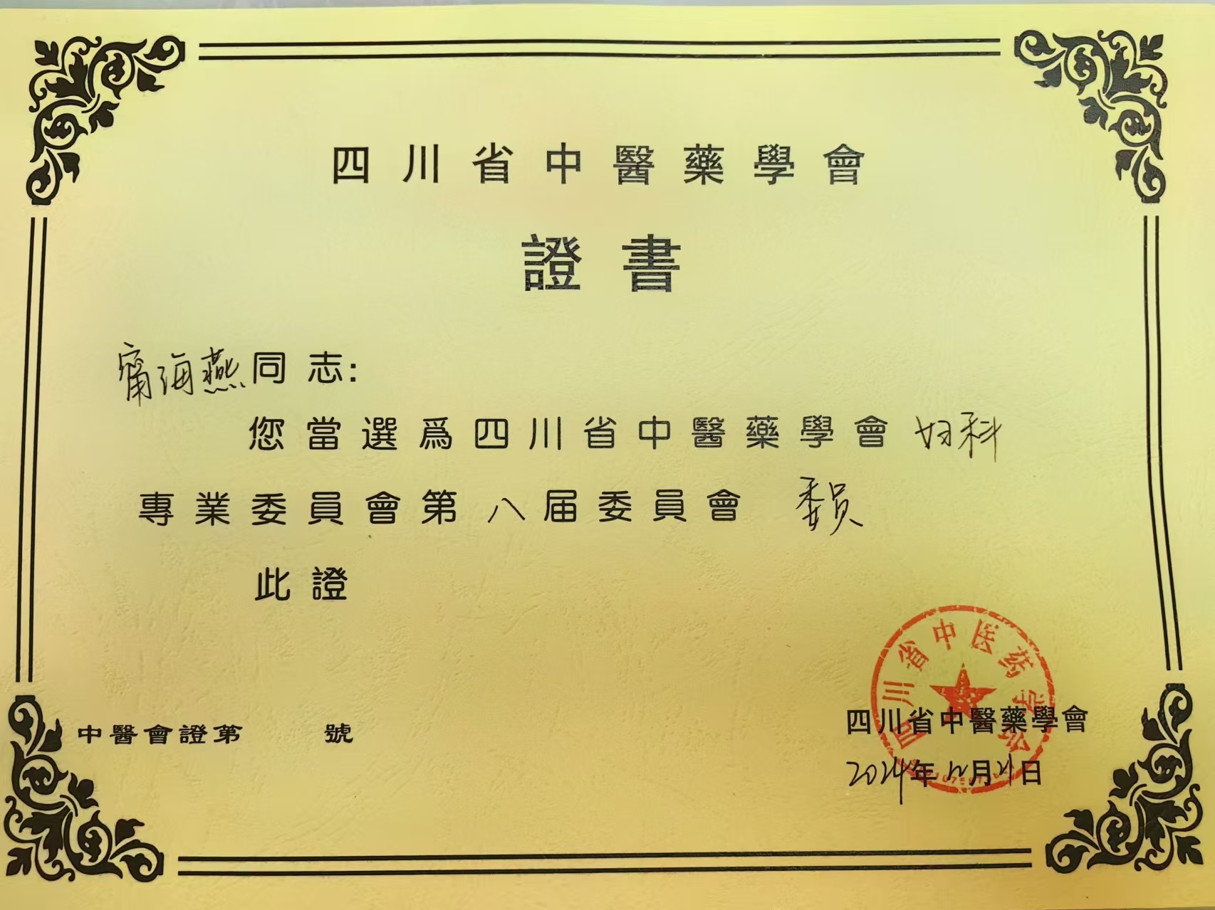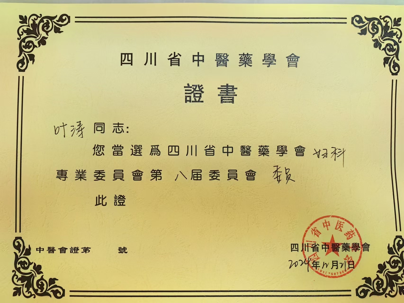 2024年12月20-22日,四川省中医药学会第八届妇科专业委员会换届选举会暨2024年妇科疑难疾病中医药诊治技术新进展培训班在成都召开。我院妇科主任兼妇产科副主任王永周教授当选为副主任委员,甯海燕、唐琳、叶涛当选为委员。