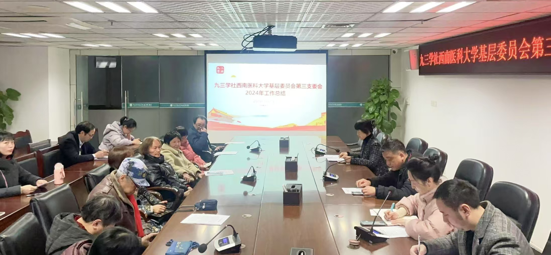2025年1月21日,九三学社西南医科大学基层委员会第三支委会召开了2024年工作总结会,九三学社泸州市委专职副主委兼秘书长邓明聪、九三学社泸州市委四级调研员张利彬以及第三支委会全体社员参加了会议。会议由第三支委会副主委刘莉主持。