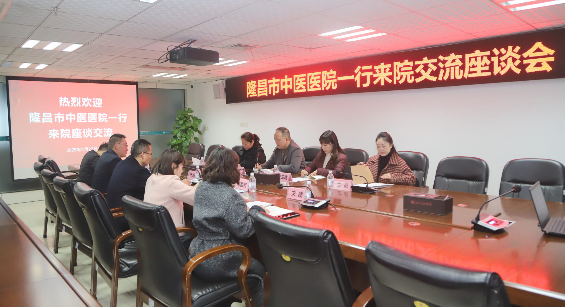 代天祥讲话,他对隆昌市中医医院同仁一行的到来表示热烈欢迎。他表示, 我院将继续坚持“资源共享、优势互补、合作共赢、共谋发展”的原则,在学科建设、人才培养、等级医院创建等方面与隆昌市中医医院加强沟通与协作,助力隆昌市中医医院提升医疗服务能力和水平,为当地人民群众的健康保驾护航。