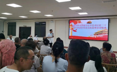 7月13日,为推动主题教育走深走实,科研党支部、发规国合党支部、人力资源党支部、治未病·体检中心党支部、中西医结合研究生党支部、泌尿外科党支部、肾病科党支部、全科医学科·VIP病房·中医经典病房党支部、肿瘤·血液病科(城北)党支部、肛肠科党支部、肝胆胰外科党支部、乳腺·甲状腺·血管外科党支部联合开展了专题学习,邀请了医院党委委员徐厚平以《深入学习贯彻党的二十大精神和省委十二届二次全会精神》为题讲了党课。