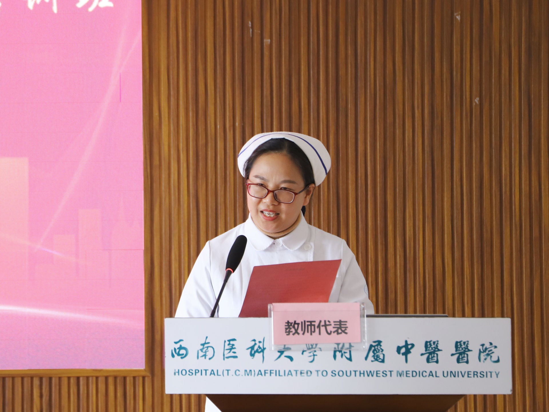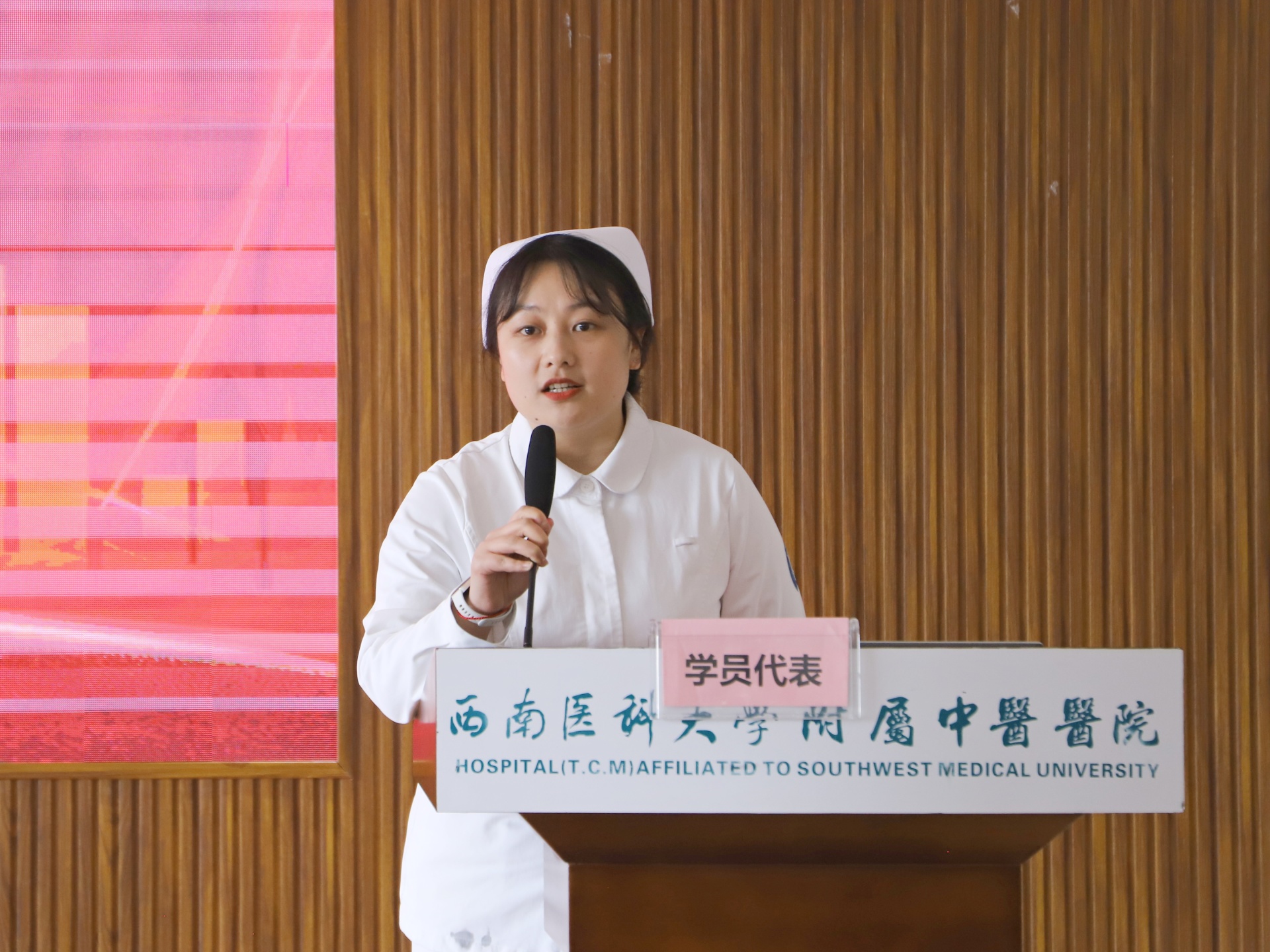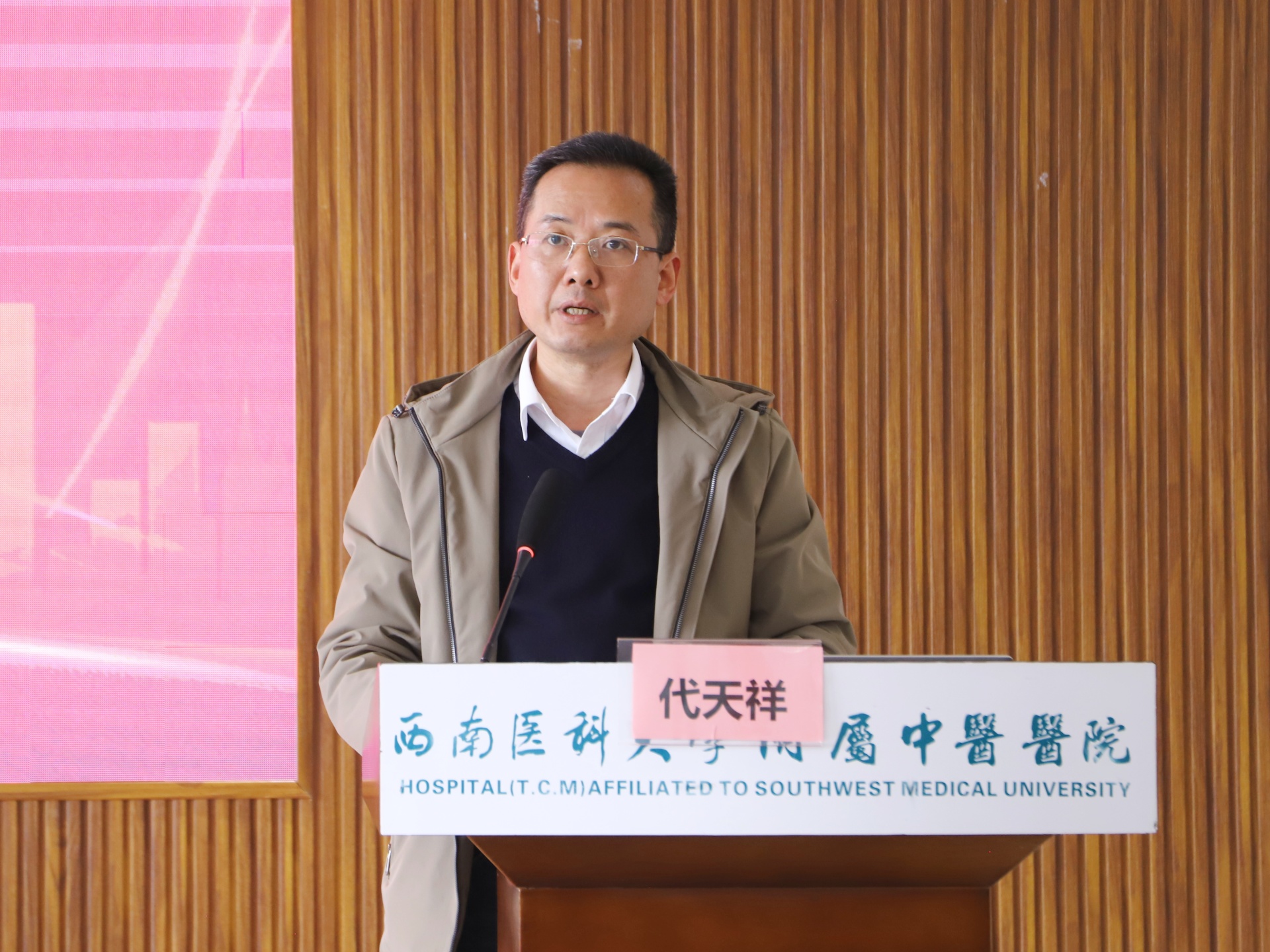 代天祥讲话。他代表医院对55名专科护士学员的到来表示欢迎,并介绍了医院的基本情况和医院中医护理工作概况。他对参加本届中医专科护士培训班学员提出了希望,要求学员们要勤于学习、善于思考,深刻理解辨证施护的内涵外延;要勤于实践、善于总结,充分掌握中医特色护理技术;要勤于交流、善于合作,携手助力中医护理事业发展,为人民群众提供更加优质高效的全方位全过程中医特色护理服务,为中医药事业的传承创新发展贡献积极力量。