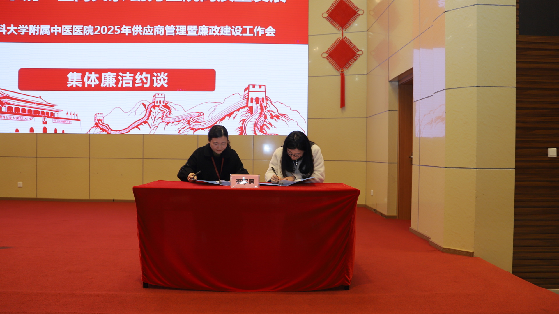随后,医院采购供应部和供应商代表签订了2025年廉洁购销合同。
