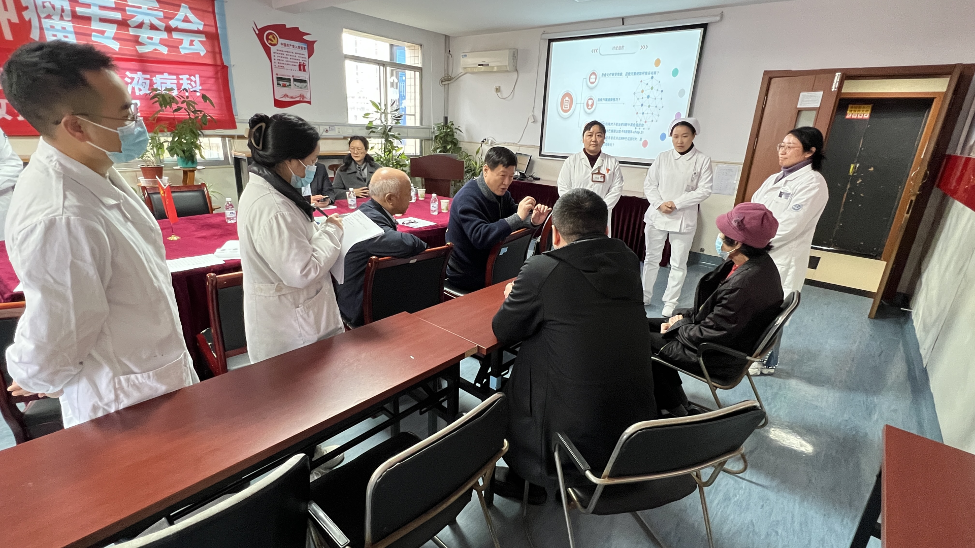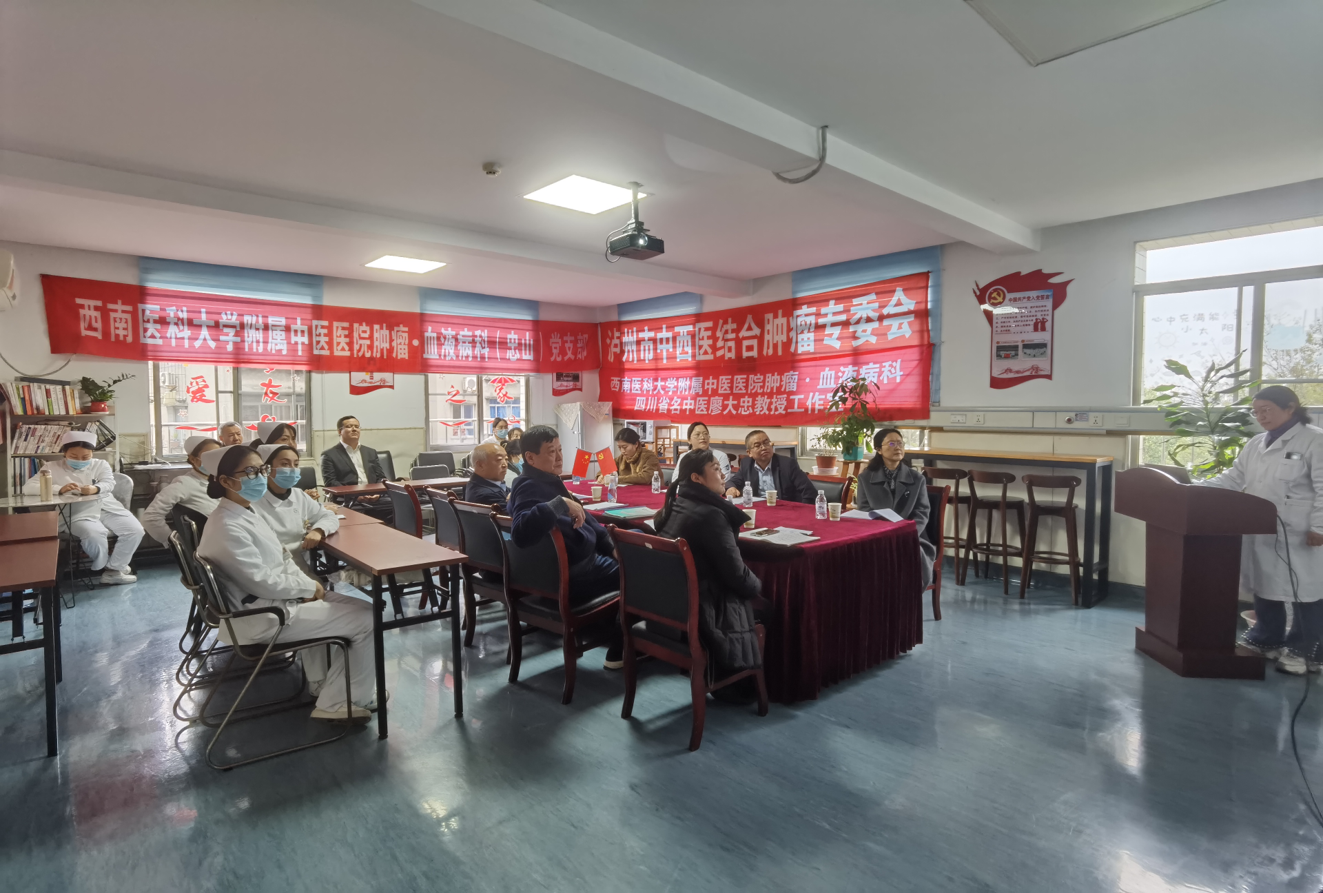 2025年3月15日,哈尔滨血液病肿瘤研究所所长马军教授,西南医科大学附属医院血液科主任邢宏运一行来院交流。我院肿瘤·血液病科学科主任廖大忠教授、肿瘤·血液病科(忠山院区)副主任张燕及科室医护人员参加了学习交流。
