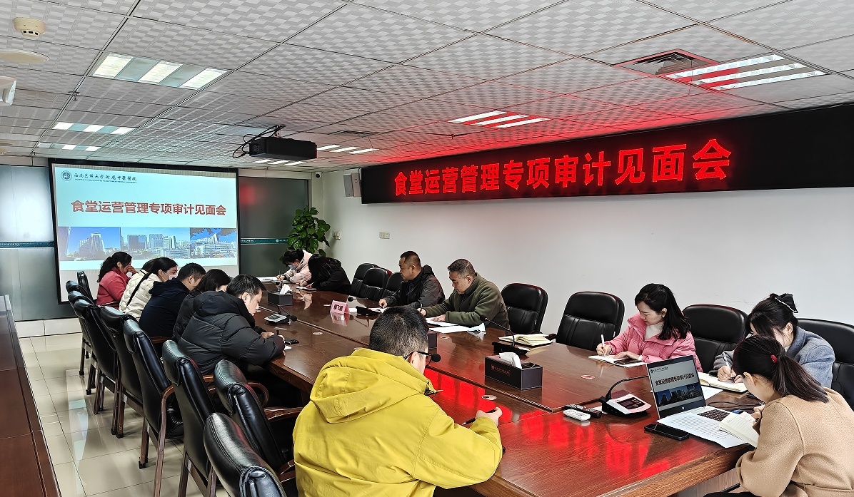 鄢飞鹏讲话。他强调,相关责任人要高度重视,深刻认识本次审计的重要意义,积极配合审计工作;要严守食品安全底线,强化价格管控,不断提升职工、患者及家属的满意度;审计组成员要严格依照审计规范开展工作。他希望,通过本次审计,切实为医院食堂运营管理把好关、诊好脉、防风险,让医院食堂在服务质量、食品安全、成本控制等方面得到提升和完善。