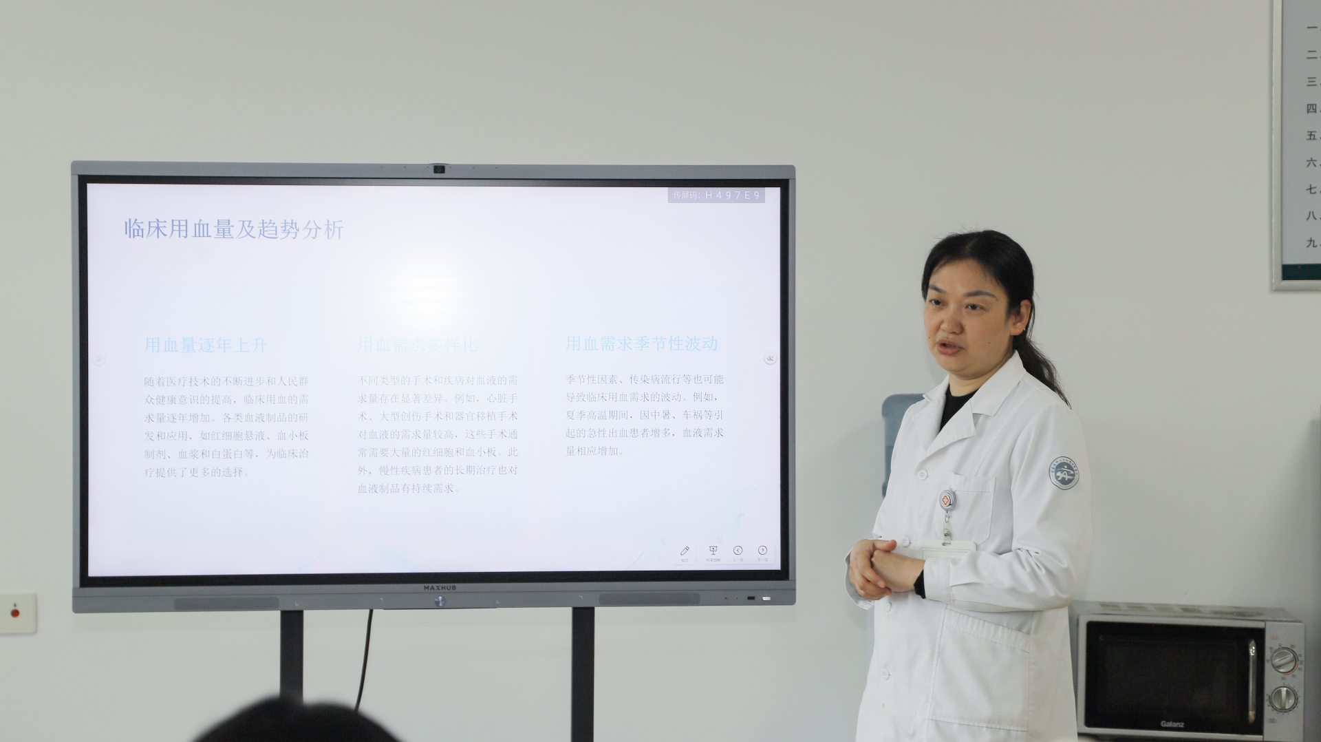 随后,队员们前往产科参观学习。汪静副教授为他们作了《临床用血与献血管理》讲座。她从临床用血现状与挑战、献血制度与政策解读、献血宣传与教育推广、临床用血管理与优化策略、血液的成份等方面进行了详细讲解。