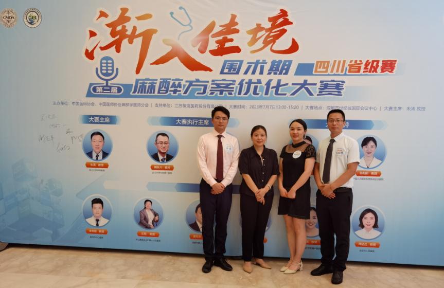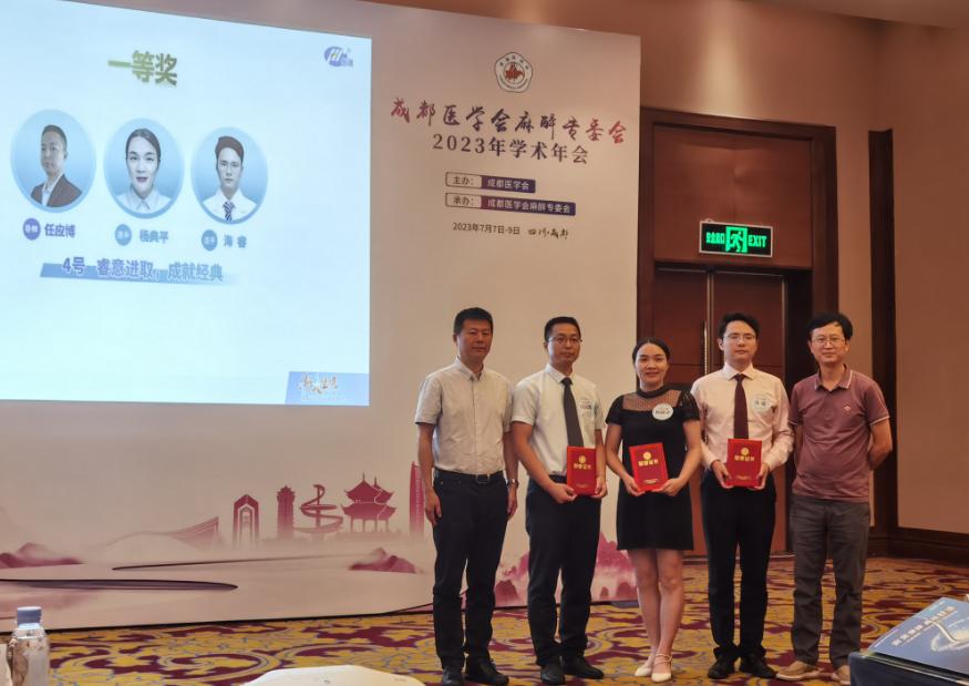 2023年7月7日,中国医师协会及中国医师协会麻醉学分会举办了“第二首届渐入佳境围术期麻醉方案优化大赛演讲比赛(四川省级赛)”。我院任应博指导老师带领麻醉科医生杨典平、乳腺·甲状腺·血管外科医生海睿组队参赛,荣获四川省级赛一等奖,并将代表四川赛区继续参加西部决赛。