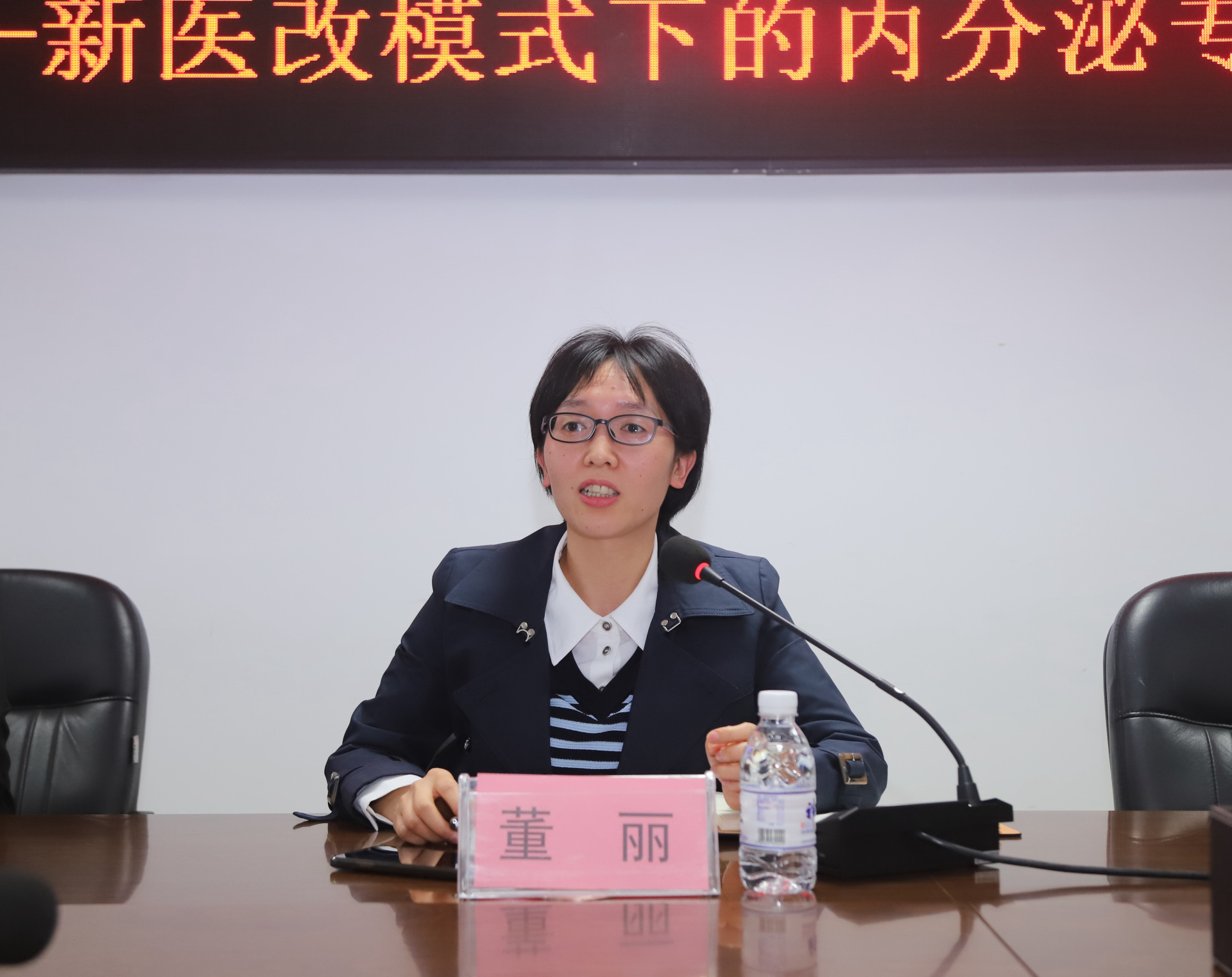 董丽致辞。她介绍了医院的基本情况及内分泌代谢科专业发展概况,希望与会人员珍惜此次难得的学习交流机会,交流经验,分享成果,学有所获,学有所思。