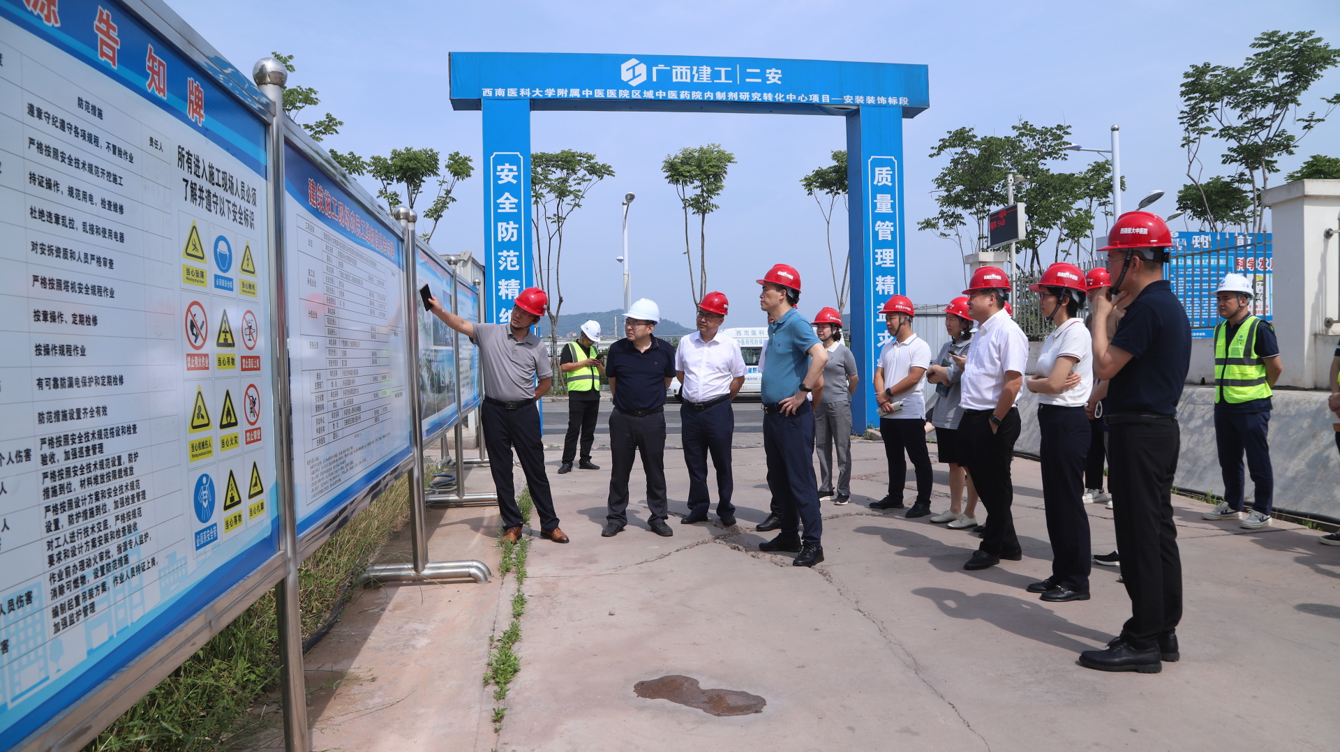 会前,医院领导班子对项目施工现场的安全、质量和进度等进行了现场督导。