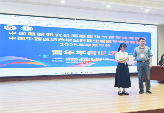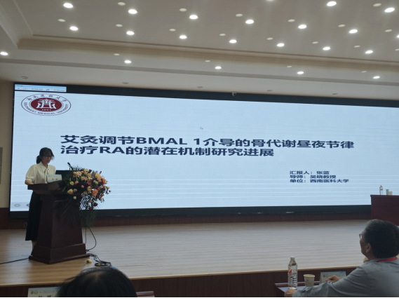 会议期间举行了“青年学者论坛”,我校中西医结合学院硕士研究生张蓝在论坛上以《艾灸调节BMAL1介导的骨代谢昼夜节律治疗类风湿性关节炎的潜在机制研究进展》为题作报告并获得证书。