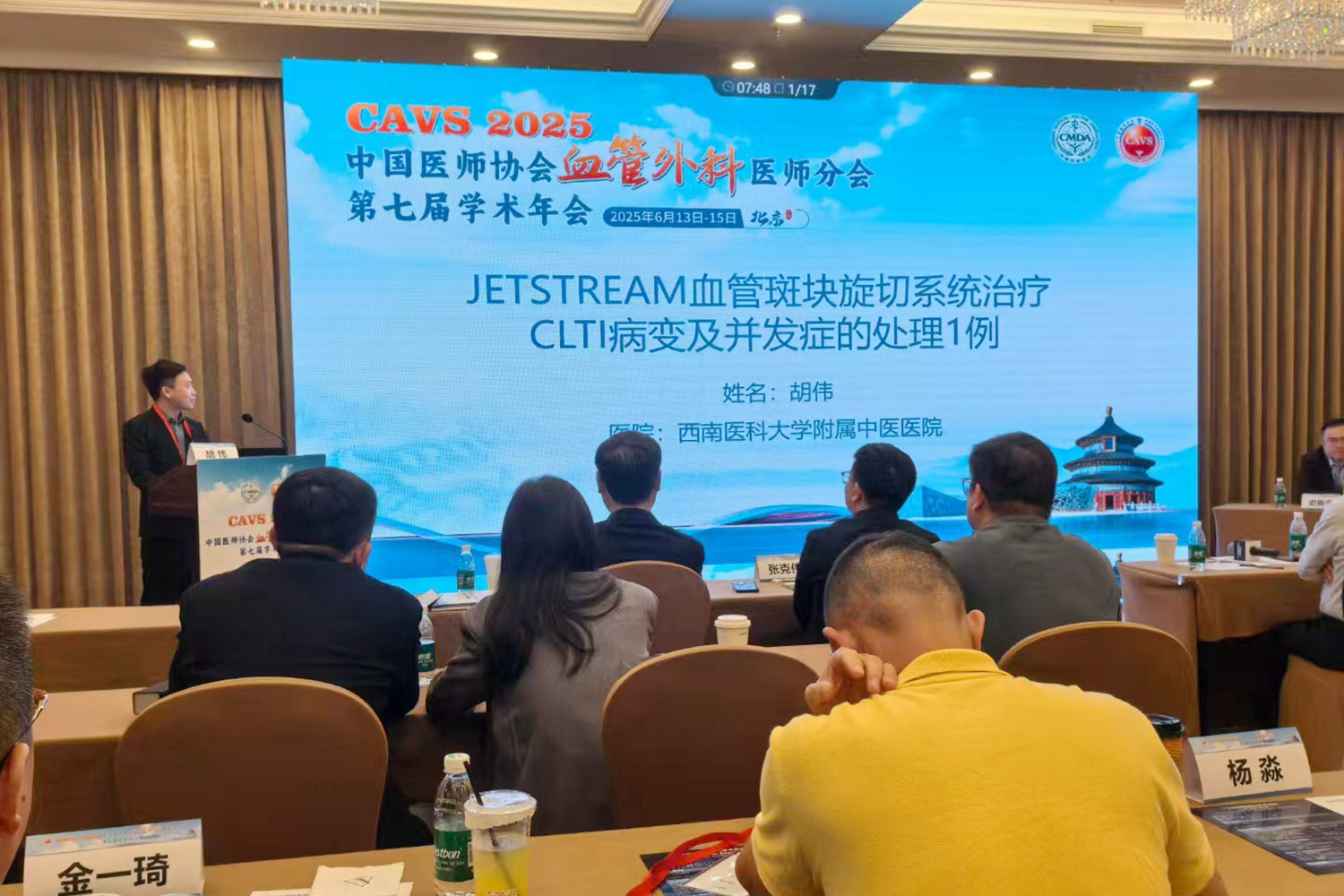 会上,胡伟作了题为《JETSTREAM 血管斑块旋切系统治疗CLTI 病变及并发症的处理》专题发言;袁罡投稿的两篇论文入选大会壁报交流,并在大会上作了口头发言。