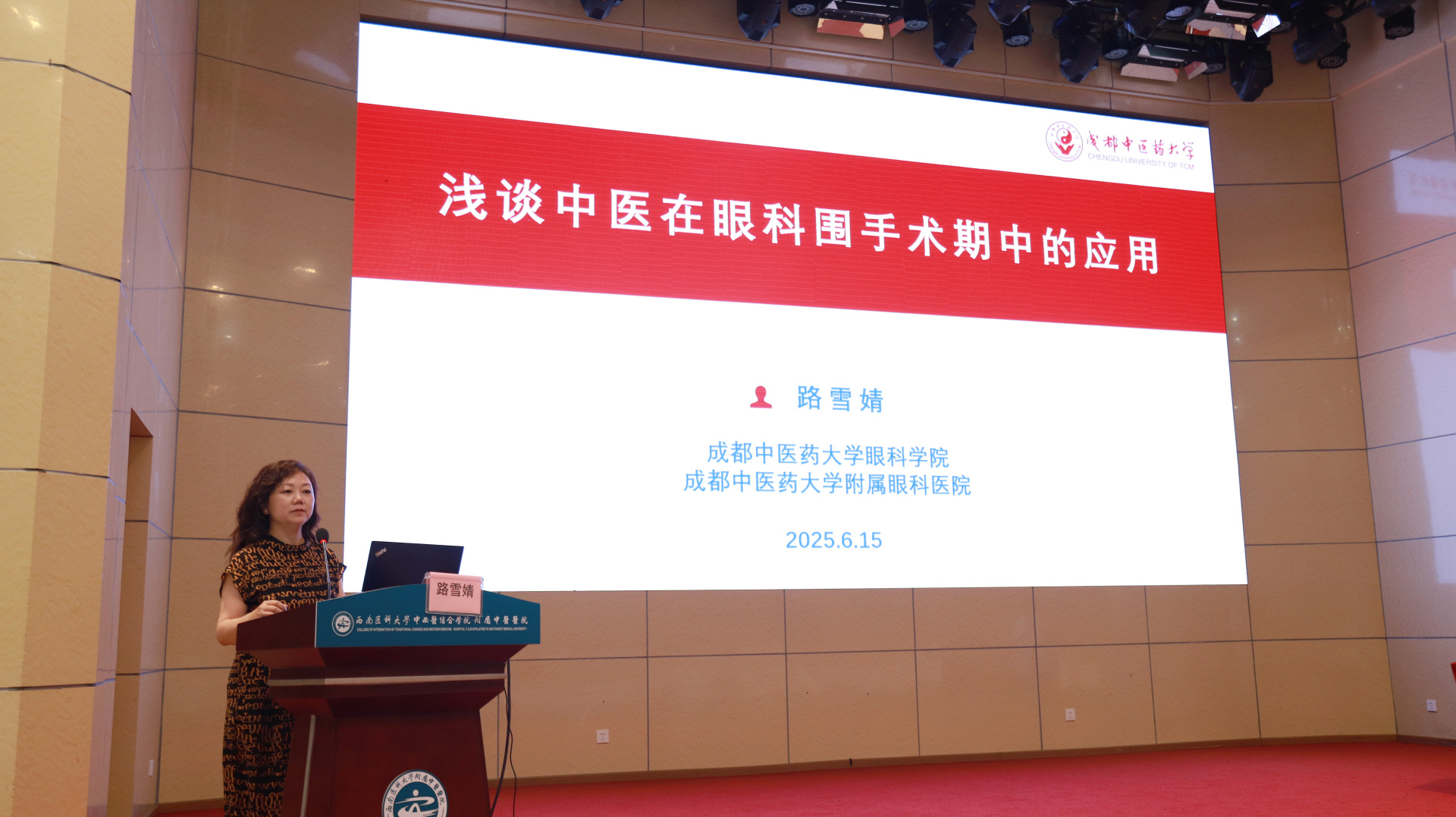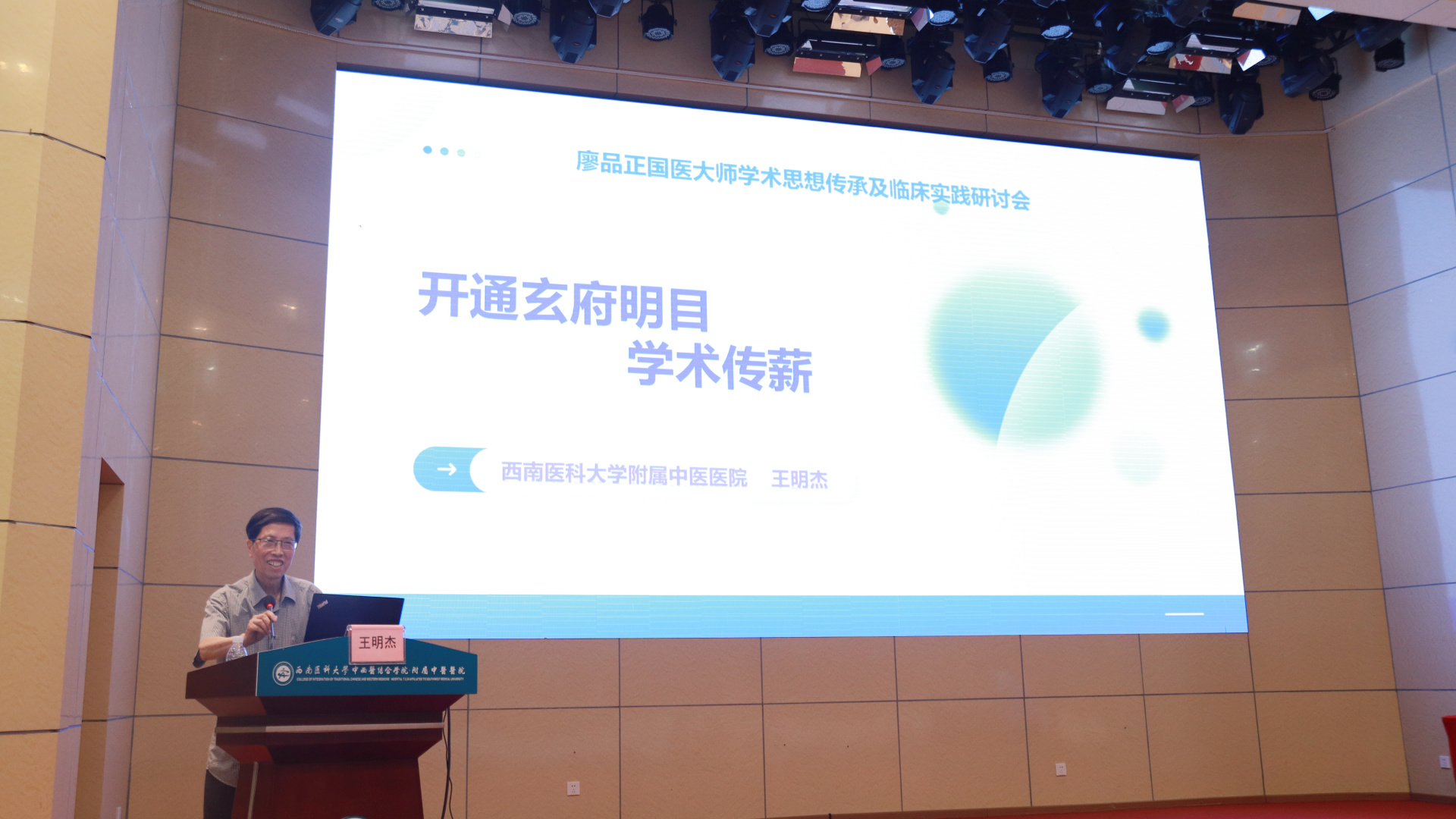 江涌致辞。他介绍了学校的基本情况后表示,本次研讨会不仅是一次学术盛宴,更是中医药传承创新的重要契机,期待与会同仁深研大师学术精髓,在互动交流中碰撞思想火花。他希望各位专家不吝分享临床智慧,为中医眼科诊疗技术突破、中医药现代化发展建言献策。西南医科大学也将以此次研讨会为契机,进一步强化中医药体系学科建设,推动国医大师经验的活态传承与创新转化。