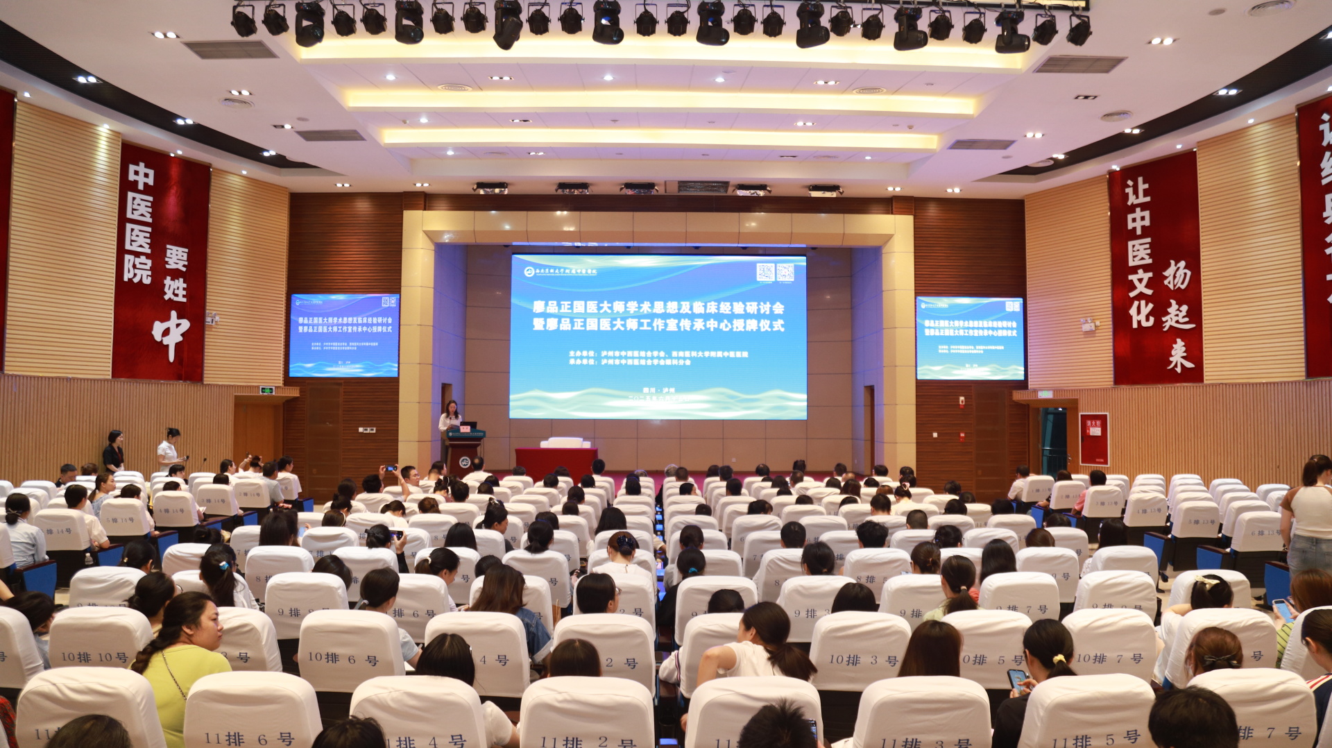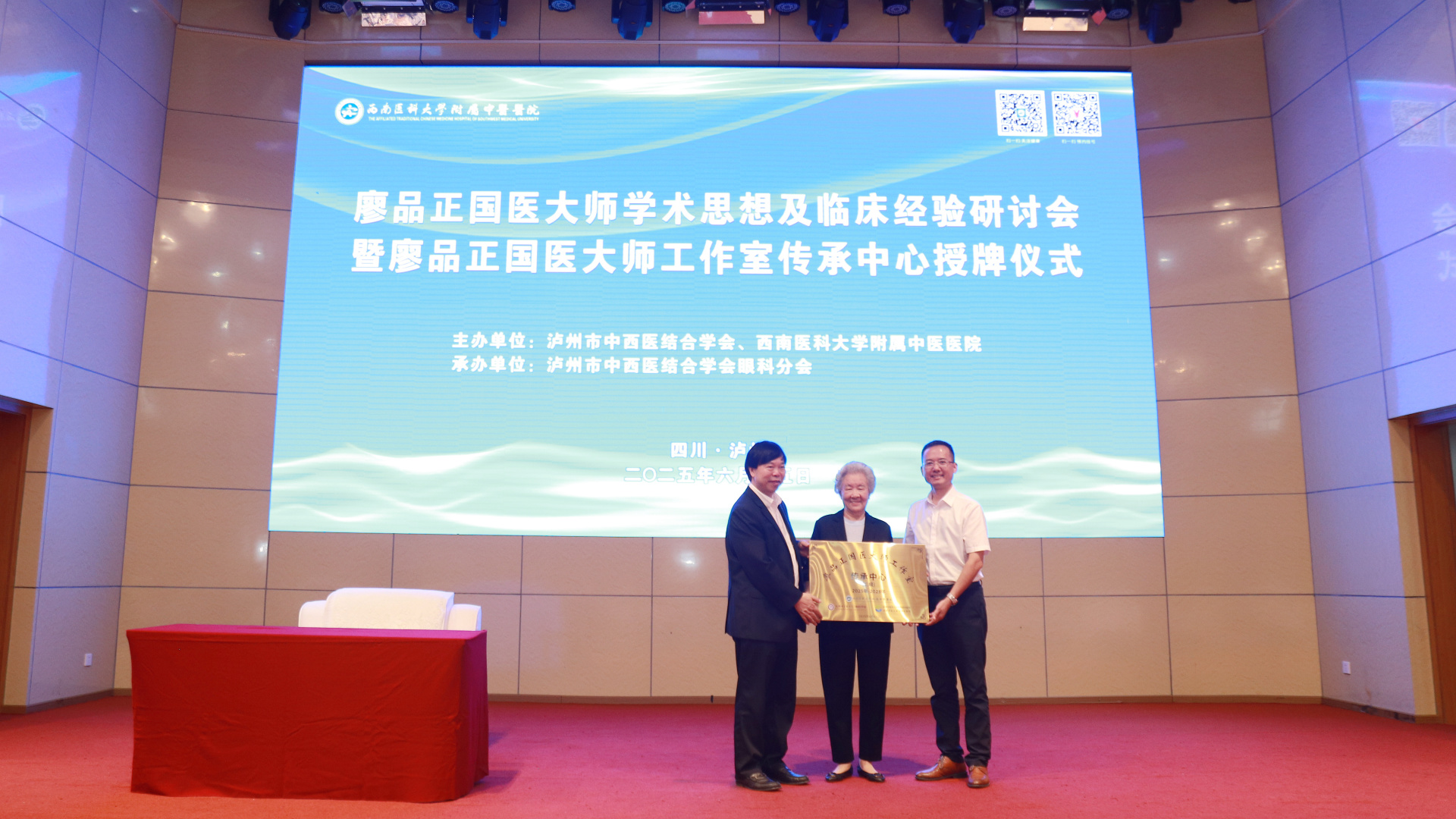 6月15日,我院举行廖品正国医大师学术思想及临床经验研讨会暨廖品正国医大师工作室传承中心授牌仪式。国医大师、成都中医药大学博士生导师廖品正,泸州市卫健委党组书记、主任曾妍,西南医科大学副校长江涌,廖品正国医大师工作室负责人、成都中医药大学眼科学院院长路雪婧,成都中医大银海眼科医院院长段俊国,我院党委书记代天祥、院长汪国友,全国名中医孙同郊及医院眼科主任牟琳教授团队等参加了开幕式。开幕式由眼科副主任李妍主持。