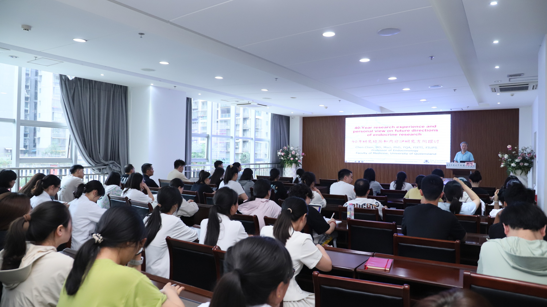 会上,我院兼职教授、澳大利亚昆士兰大学陈晨教授以《40年研究经历和内分泌研究方向探讨》为题作了专题报告,系统梳理了其团队在内分泌领域长达四十年的研究轨迹与突破性成果。报告从基础研究到临床转化,从分子机制到疾病防控,全方位展现了内分泌学科的发展脉络。陈教授重点聚焦肥胖症、糖尿病等重大代谢性疾病的发病机制与治疗靶点,分享了多项具有国际影响力的原创性发现,为相关研究提供了创新性的理论框架和方法学指导。