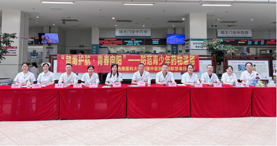 6月26日,第38个国际禁毒日当天,药剂科党支部联合麻醉科党支部、疼痛科党支部、肿瘤・血液病科(城北)党支部、制剂室党支部,在医院城北门诊大厅开展 了“禁毒护航・青春向阳”—— 防范青少年药物滥用义诊主题党日活动。专家们为群众提供免费疾病诊察、血压测量及合理用药宣教服务,深入讲解毒品的危害、识别与防范相关知识,并在门诊区域摆放了禁毒反诈宣传资料。
