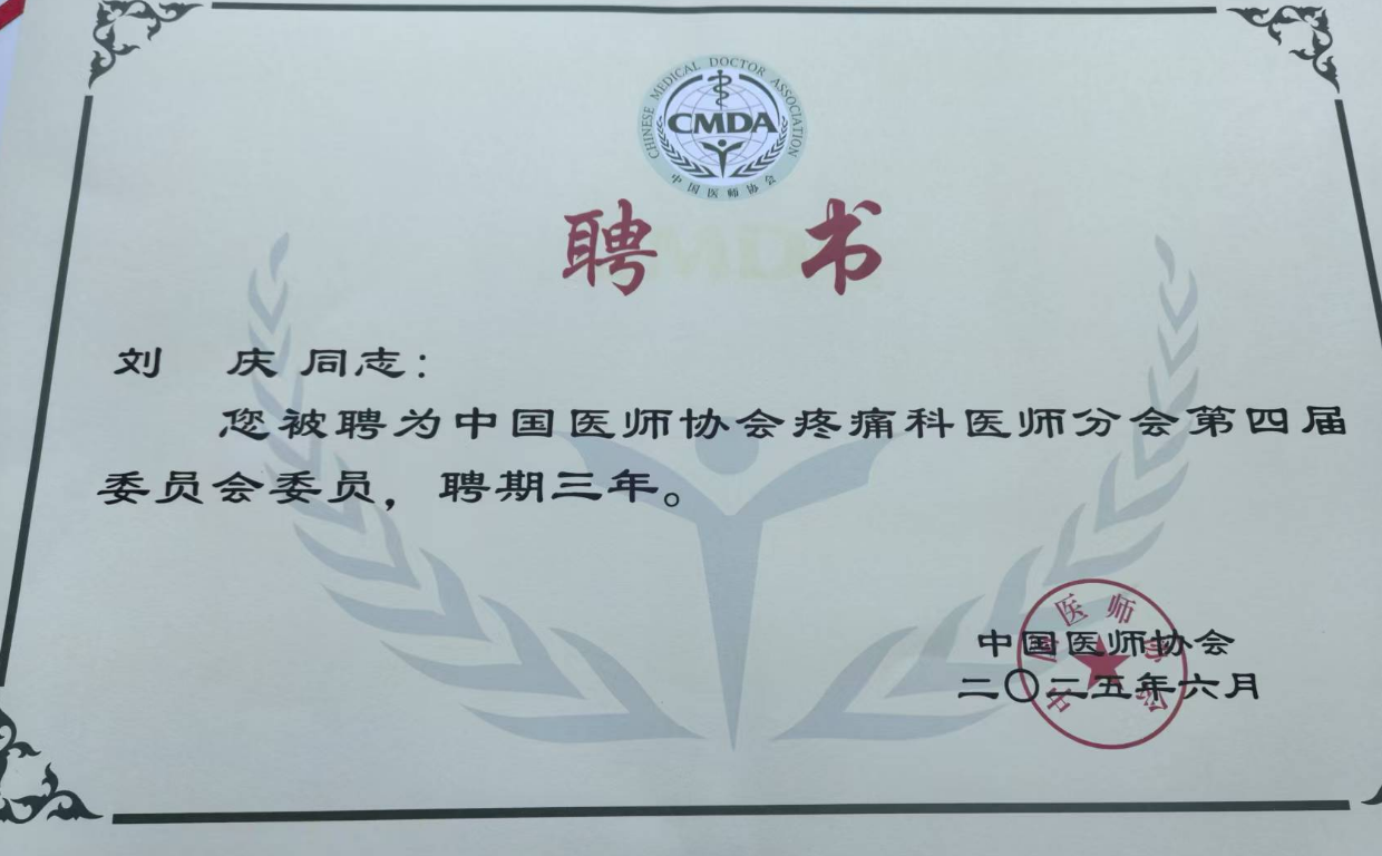 6月14日,中国医师协会疼痛科医师分会换届,我院疼痛科主任刘庆教授当选为分会第四届委员会委员。