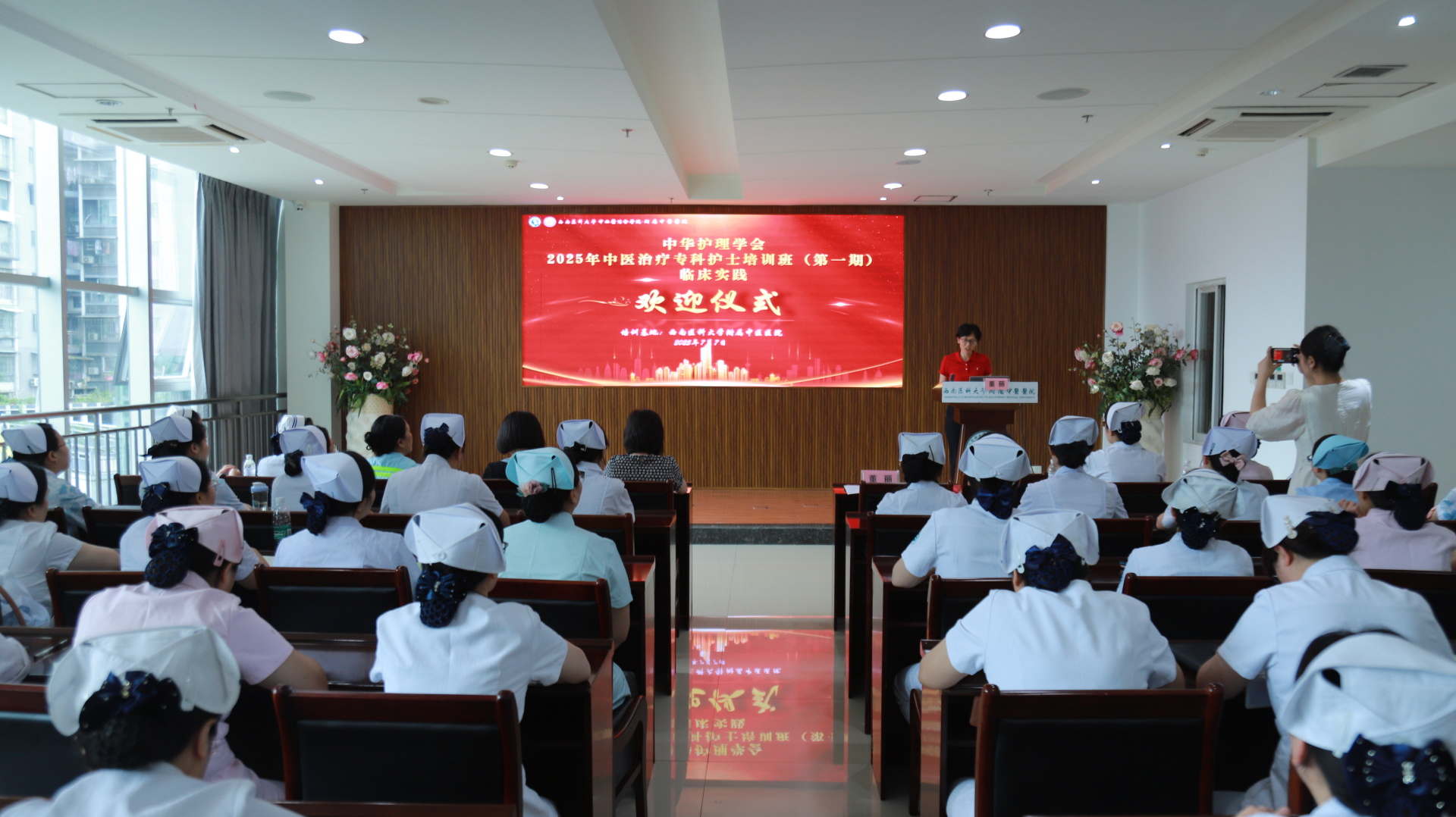 7月7日,我院举行中华护理学会2025年中医治疗专科护士培训班(第一期)临床实践欢迎仪式,医院副院长董丽,相关职能部门负责人、基地科室护士长、带教老师及来自省内外12家医院的15名培训学员参加了欢迎仪式。欢迎仪式由护理部部长李素莲主持。