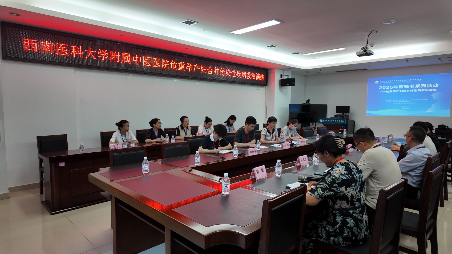 7月22日,我院开展2025年医师节系列活动之“危重孕产妇合并传染性疾病救治演练”。泸州市卫生健康委员会副主任熊维平、龙马潭区卫生健康局副局长米威,我院院长汪国友、党委副书记雷学举、副院长董丽及医务部等7个职能部门、产科等13个临床辅检科室等参加了演练。演练共分为演练动员会和实战场景演练两个阶段。