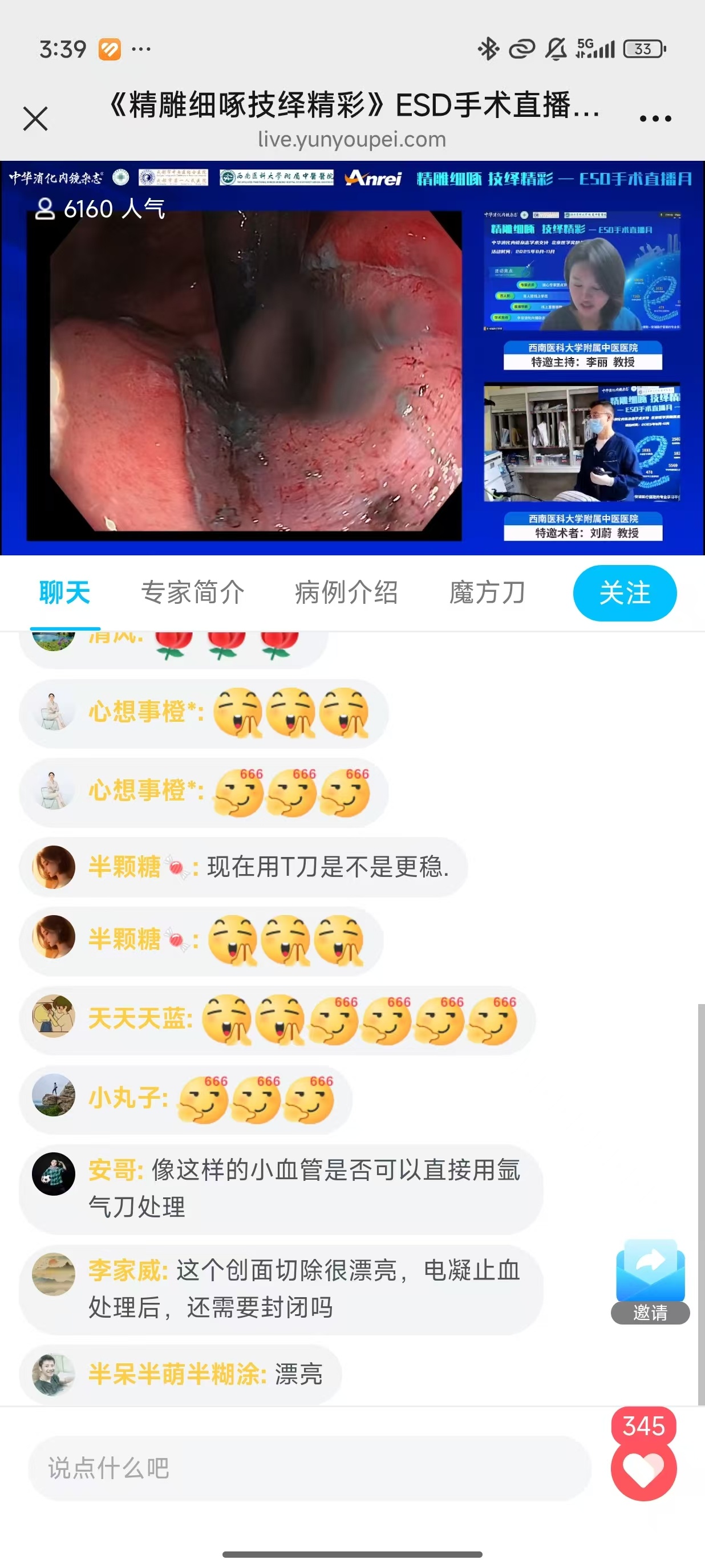 8月25日,由中华消化内镜杂志学术支持、北京医学奖励基金会主办、我院承办的“精雕细琢,技绎精彩”ESD(内镜下黏膜剥离术)手术直播活动(全国第五期、四川省第二站)举行。此次活动由我院脾胃·风湿免疫病科李丽副教授主持并全程解说。
