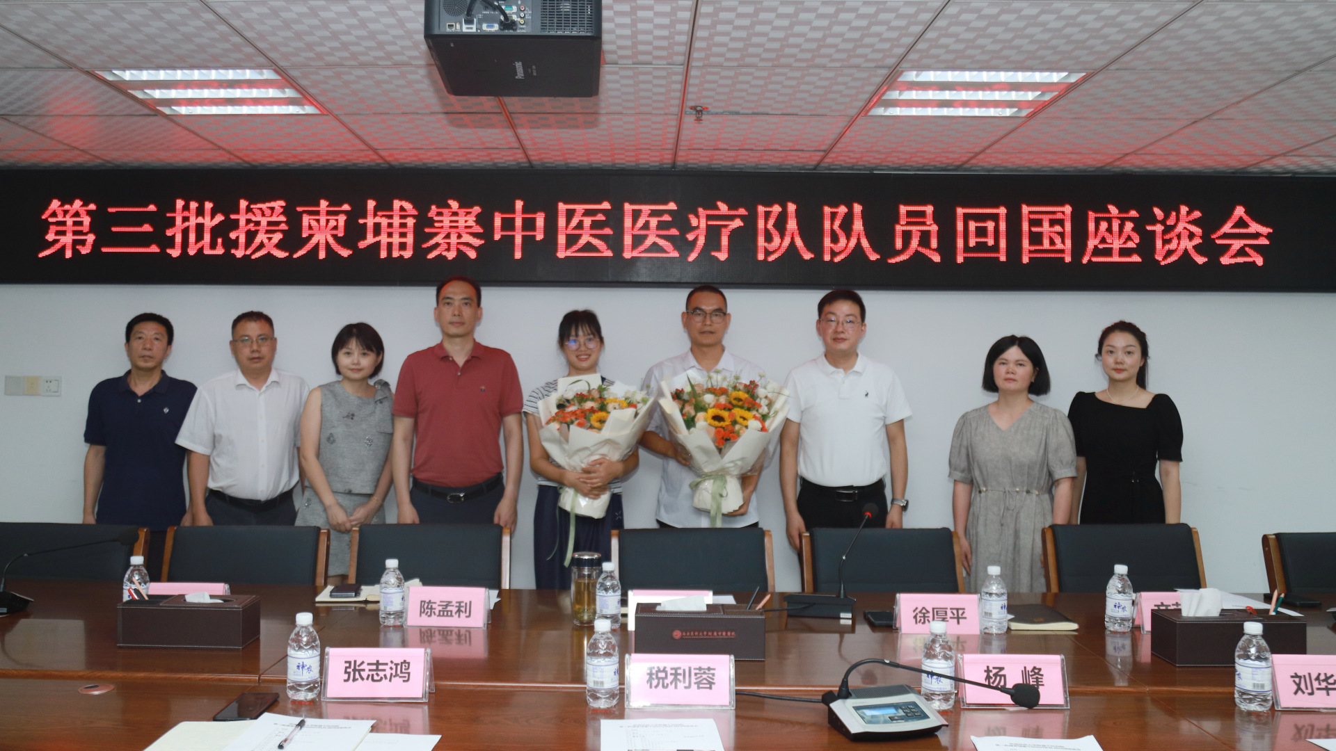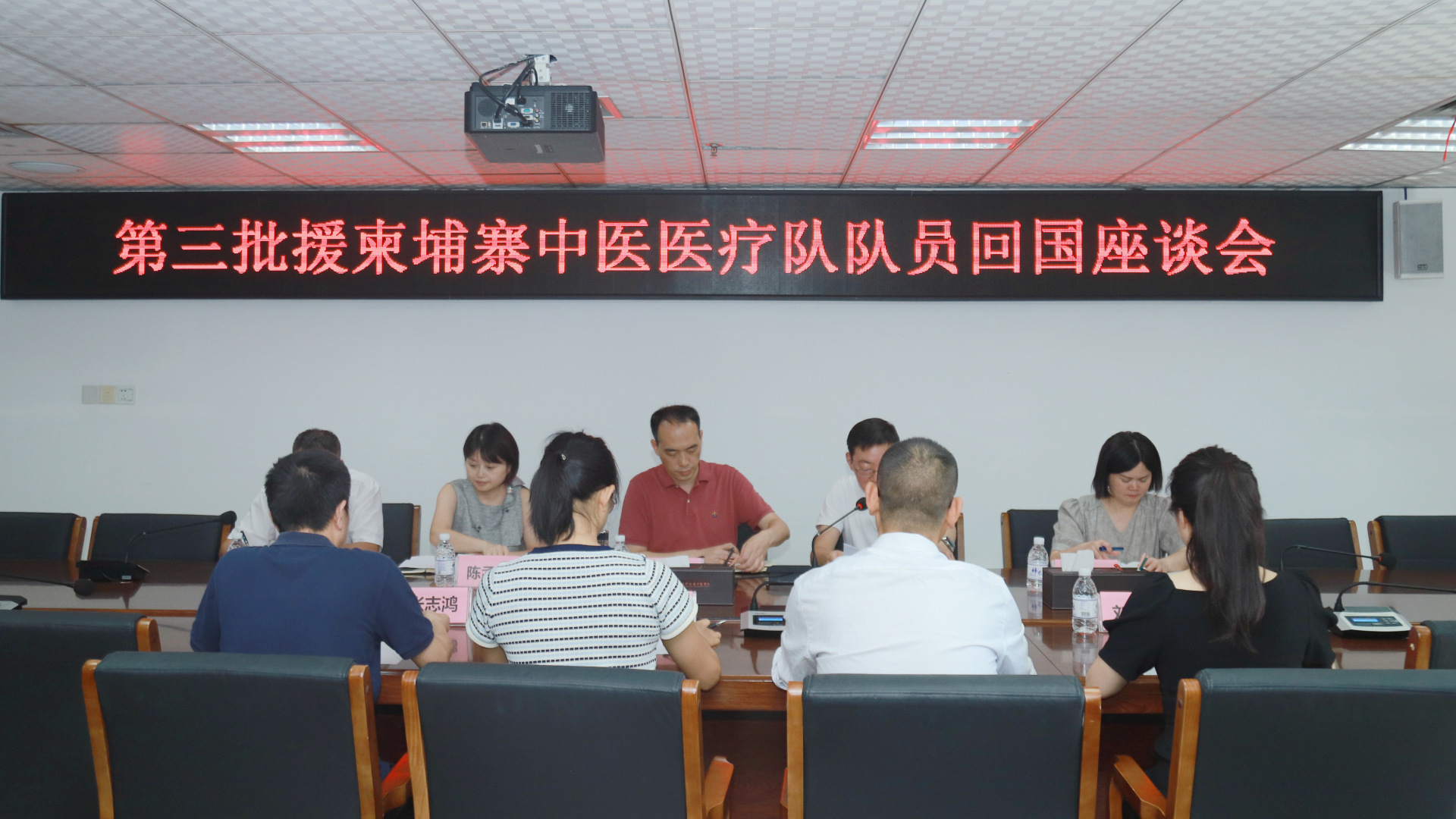 8月26日,我院举行第三批援柬埔寨中医医疗队队员回国座谈会,热烈欢迎税利蓉、杨峰两名援外队员圆满完成援外医疗任务,平安归来。院长汪国友、副院长徐厚平、相关职能部门及临床科室负责人等参加了会议。会议由徐厚平主持。