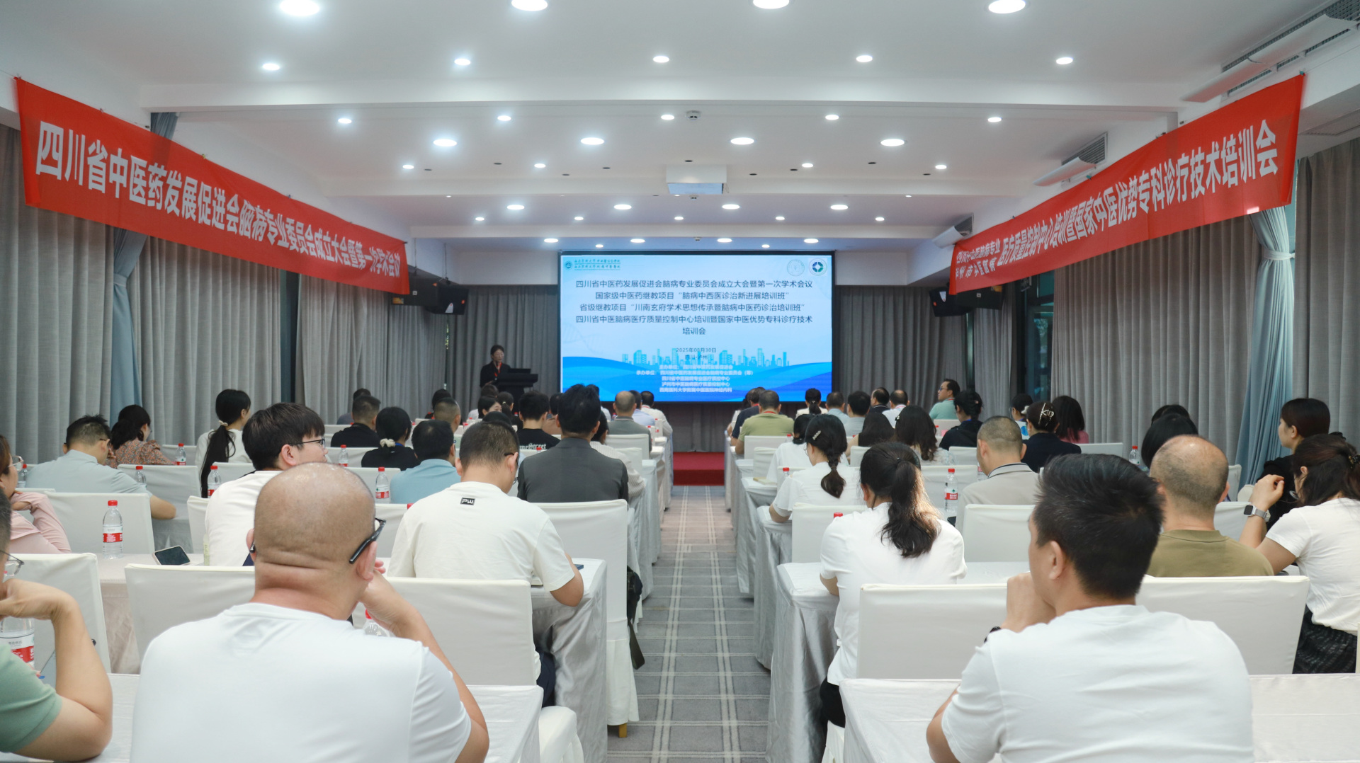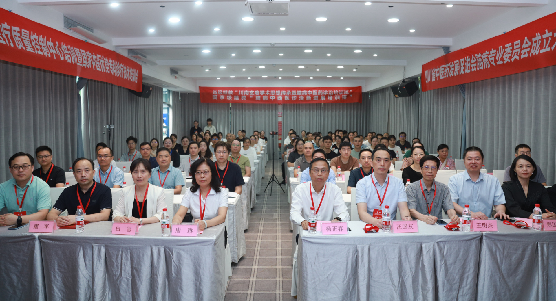 8月29-30日,我院举办四川省中医药发展促进会脑病专业委员会成立大会暨第一次学术会议、国家级中医药继教项目“脑病中西医诊治新进展培训班”、省级继教项目“川南玄府学术思想传承暨脑病中医药诊治培训班”、四川省中医脑病医疗质量控制中心培训暨国家中医优势专科诊疗技术培训会。四川省中医药发展促进会会长杨正春、副秘书长唐琳,我院院长、四川省中医药发展促进会副会长汪国友,相关授课专家及省内外脑病专业同仁等100余人参加了开幕式。开幕式由我院神经内科唐红梅主持。