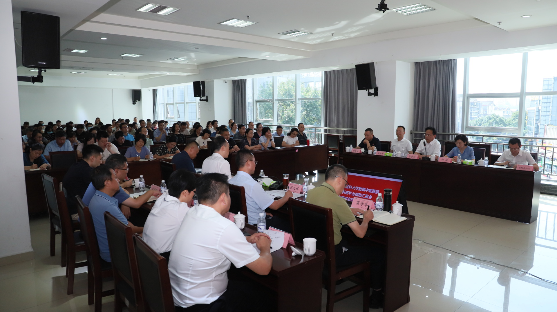 9月16日,我院举行科研平台调研汇报会暨2026年国家自然科学基金申报启动会。西南医科大学党委书记张春祥,党委副书记、校长何涛,党委常委、副校长周翔宇等校领导,以及我院领导班子成员、临床科室负责人、博士、专职科研人员、在站博士后等参加会议。会议由我院党委书记代天祥主持。