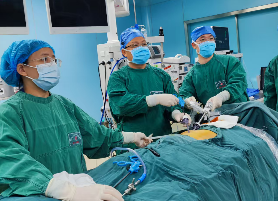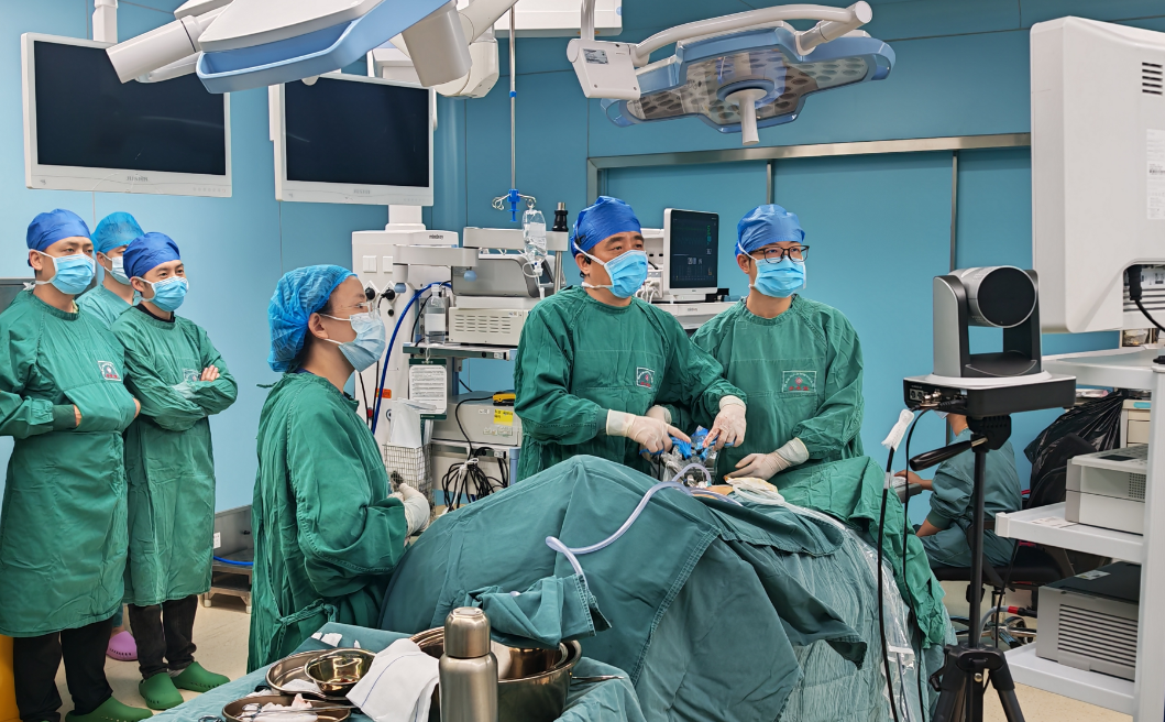 会前,还进行了腹腔镜腹股沟疝修补术和单孔腹腔镜腹股沟疝修补术手术演示。