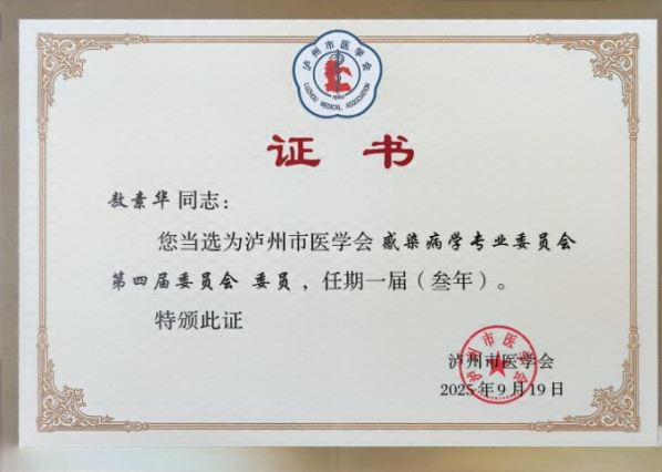 9月19日,泸州医学会感染病学专业委员会第四届换届选举会在南苑宾馆召开。我院大内科副主任兼肝胆病科主任汪静教授当选为副主任委员,呼吸内科主任敖素华教授、袁雨来副教授,肝胆病科副主任王晓栋副教授、彭昭宣主治医师当选为委员。