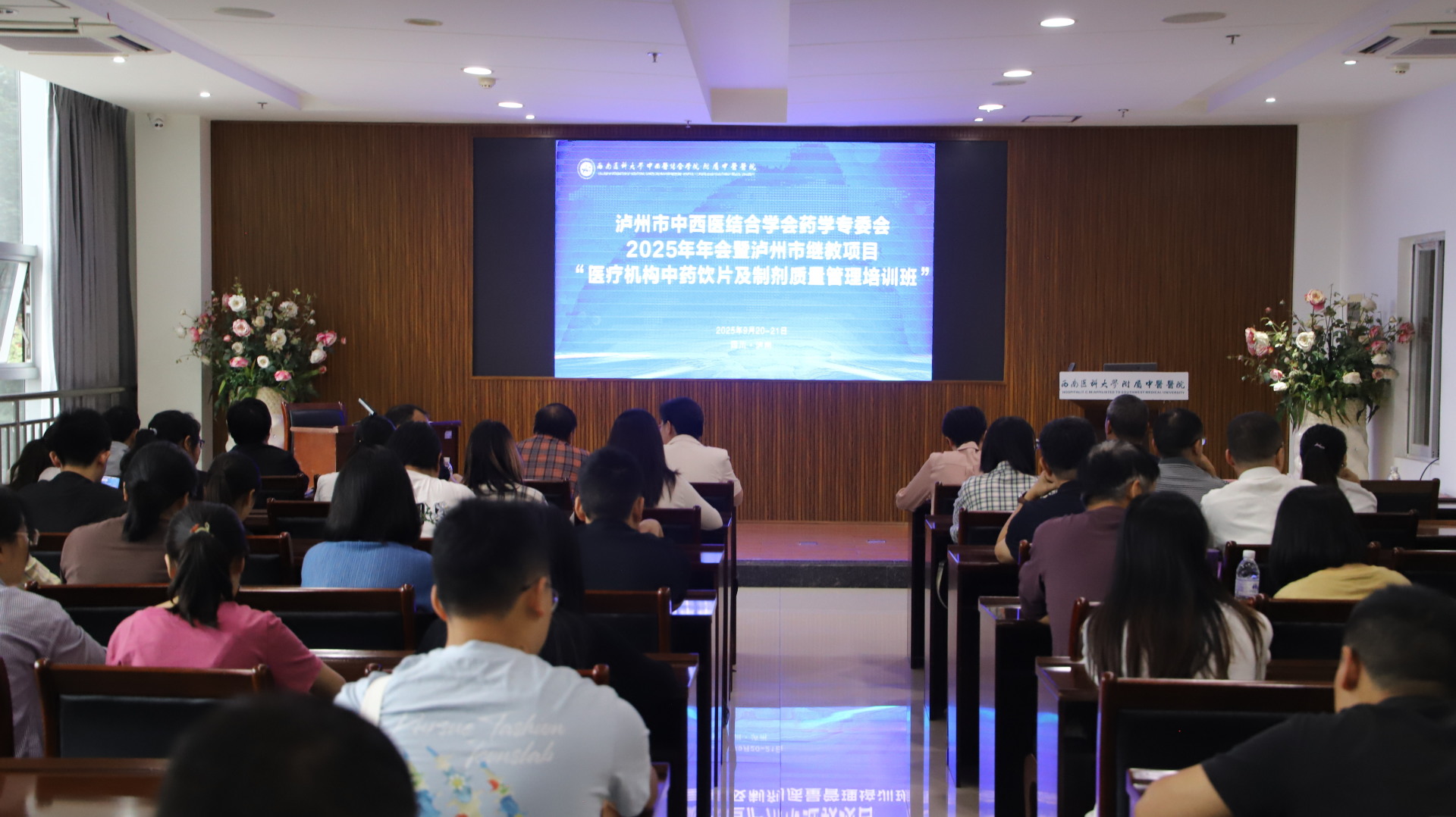 9月20-21日,2025年度四川省中医药继续教育项目“庄诚教授全国老药工学术传承及制剂质量管理培训班”、四川省老年医学学会中药制剂专委会学术年会、泸州市中西结合学会药学专委会学术年会暨泸州市医学继教项目“医疗机构中药饮片及制剂质量管理培训班”中药学系列学术会议暨四川省中医药继续教育项目“四川省名中医庄诚教授学术思想及临证经验培训班”、泸州市继教项目“中医全科思维第二期培训班”中医学系列学术会议在我院召开。开幕式由药学部部长赵福兰主持。