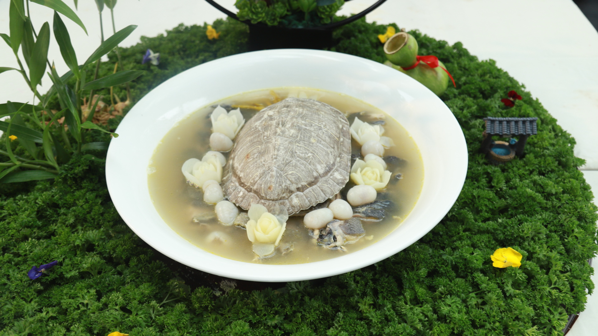 据悉,五珍滋元汤由黄精、石斛、桂圆三种“酒城九味”中的道地药材与龟、乌鸡两种食材组成,采取传统烹调方法,最大程度地保留药材有效成分和天然本味,具有阴阳互生、气血同调、滋养元气的功效。