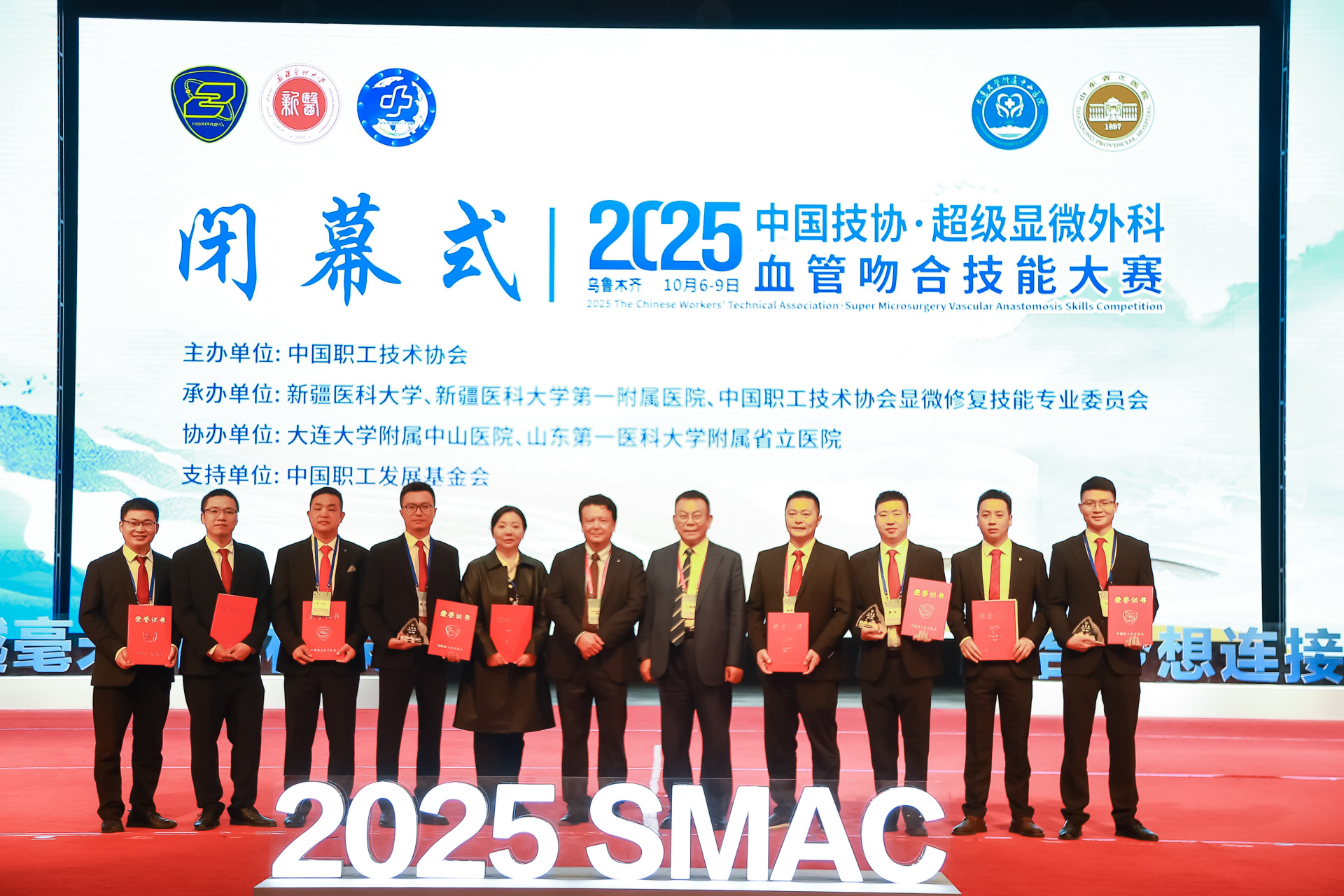 10月6-9日,由中国职工技术协会主办的“2025中国技协·超级显微外科血管吻合技能大赛”在新疆乌鲁木齐举办。我院骨伤科手外·儿骨·烧伤整形组医生参加了比赛。